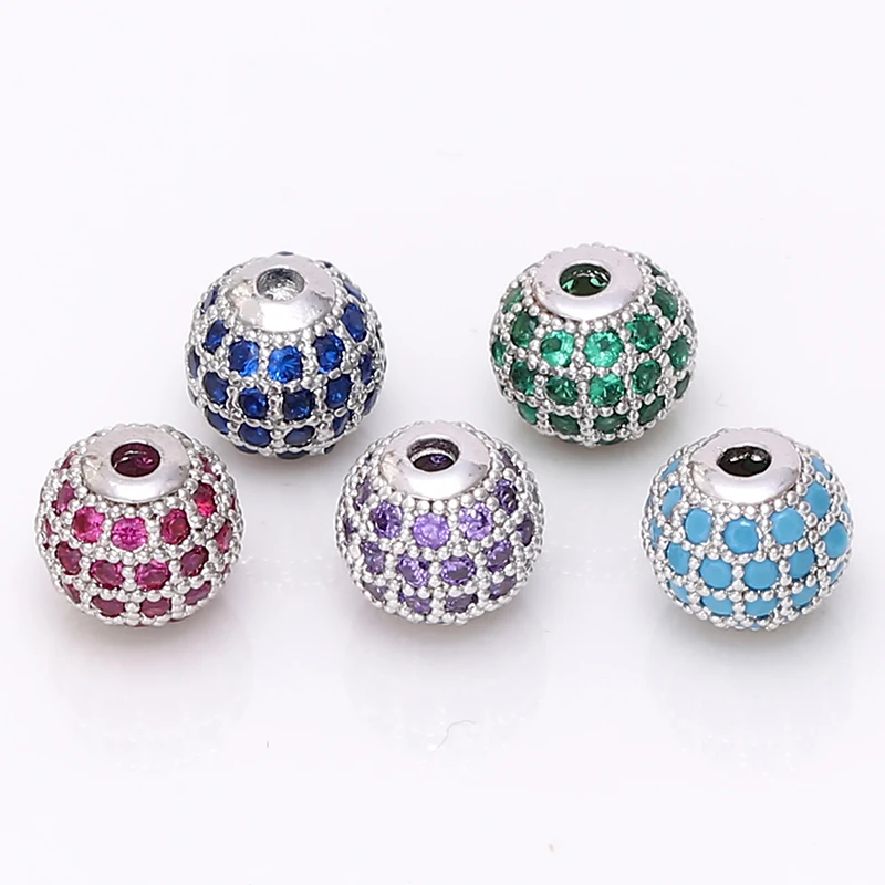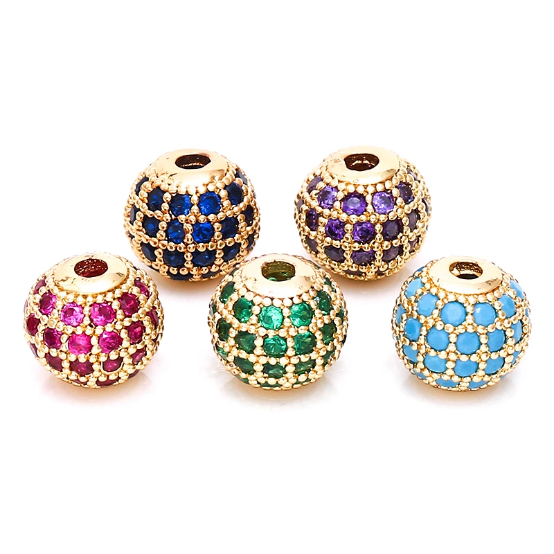 Разноцветные Круглые бусины для дискотеки с микрозакрепкой из циркония AAA, 4-12 мм, медные свободные бусины-разделители для браслетов, аксессуары для изготовления ювелирных изделий