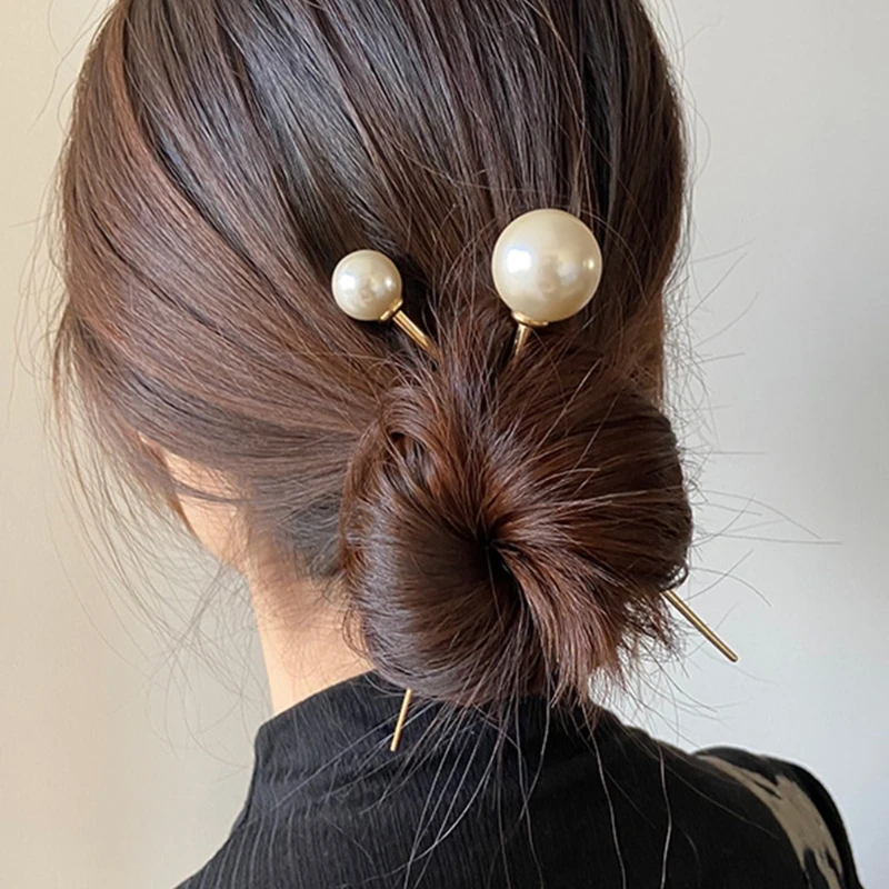 Искусственная жемчужина заколка для волос вилка шиньон шпилька Ретро металлическая палочка для еды держатель для волос