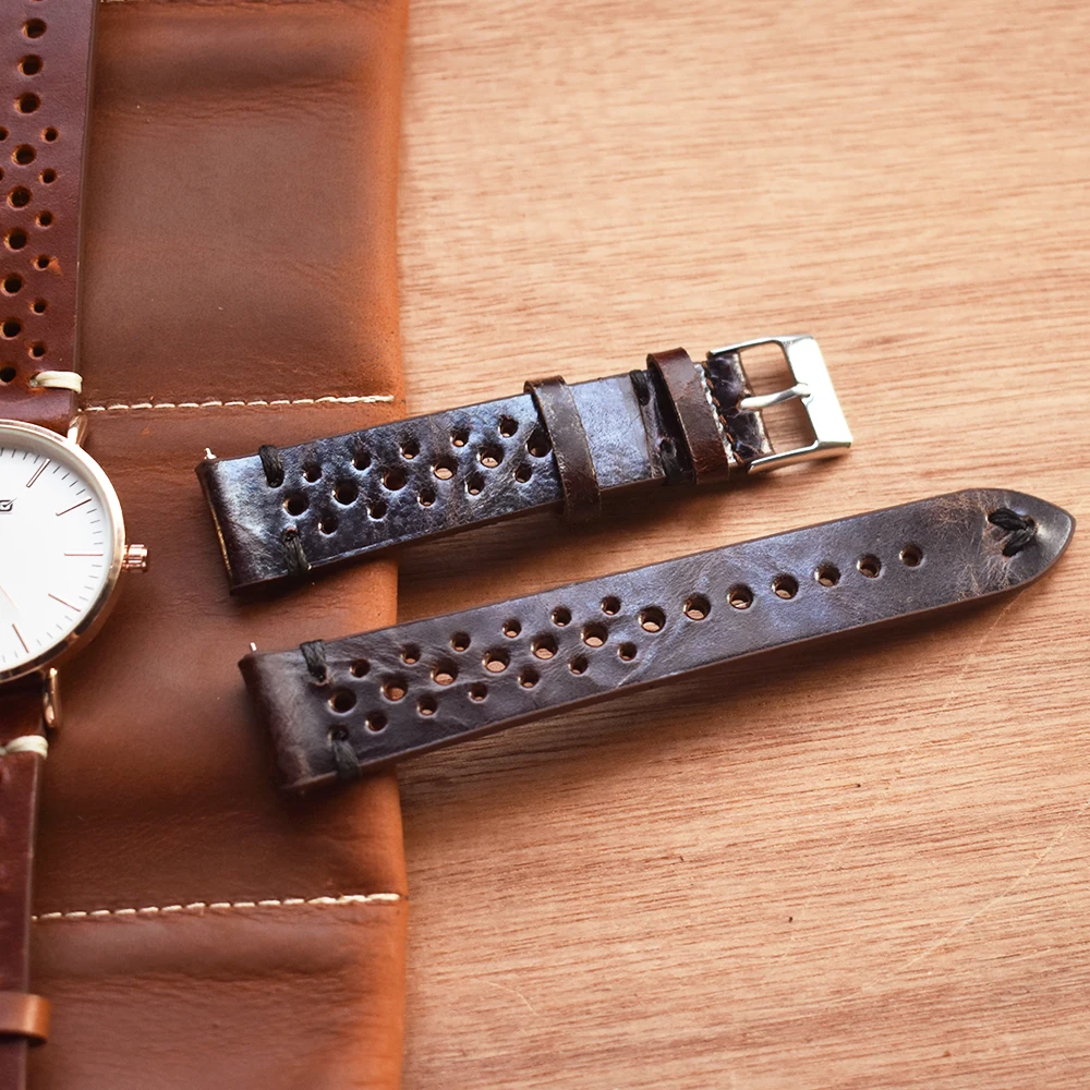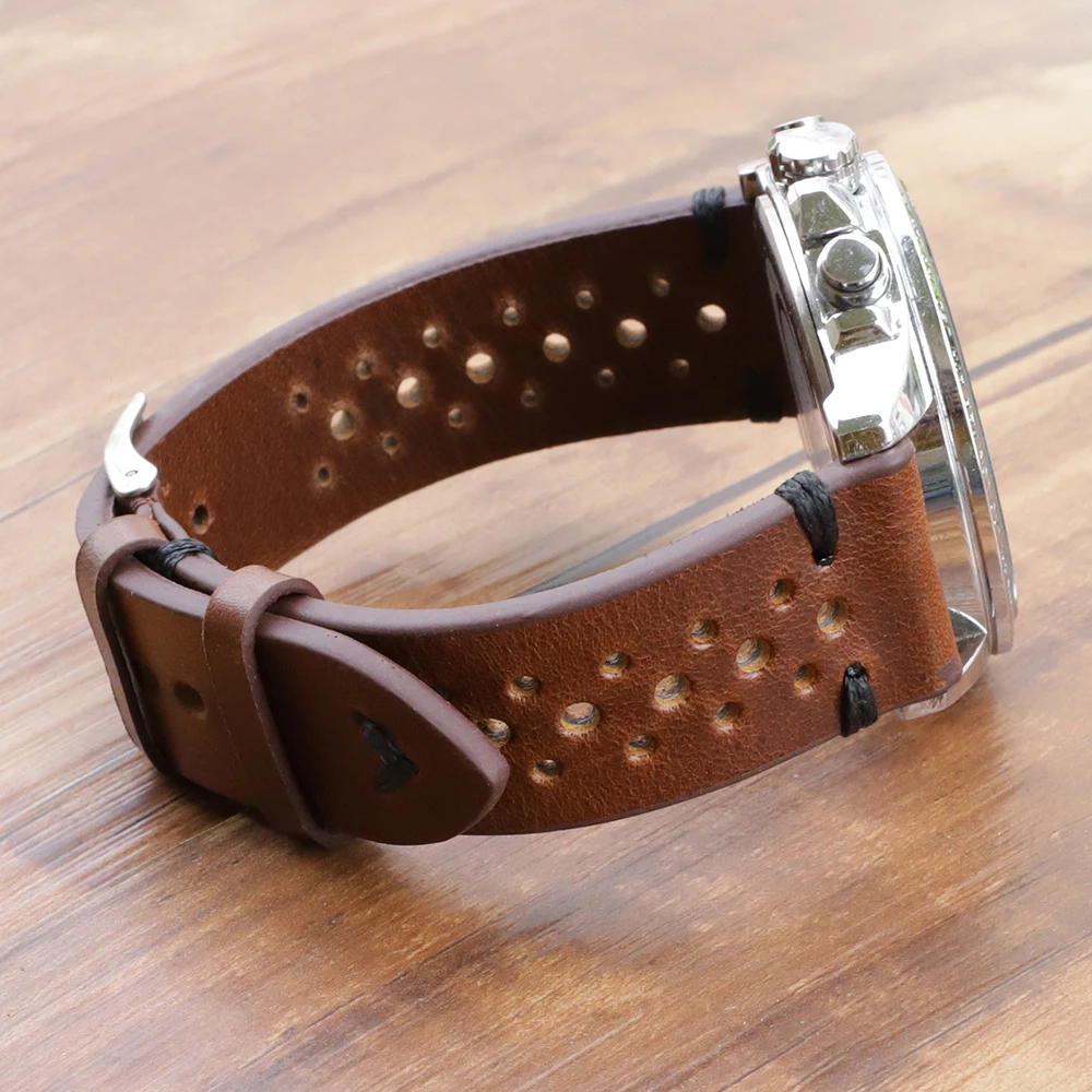 Ретро ремешок для часов из натуральной кожи 18 мм 20 мм 22 мм 24 мм ремешок для часов из телячьей кожи пористый дышащий ручной работы сшитый для мужчин