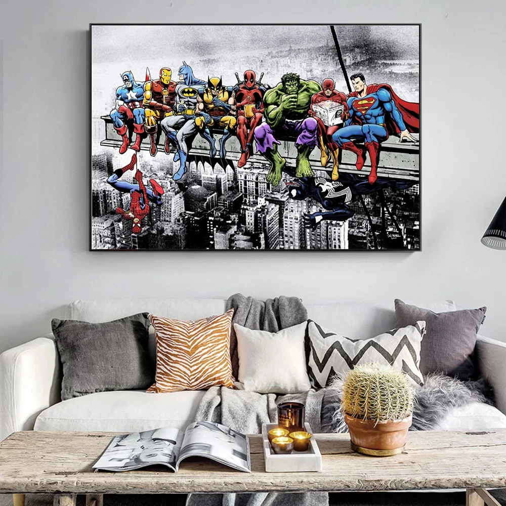 Настенная живопись Marvel плакат супергероя, Бэтмен и трансформеры,...