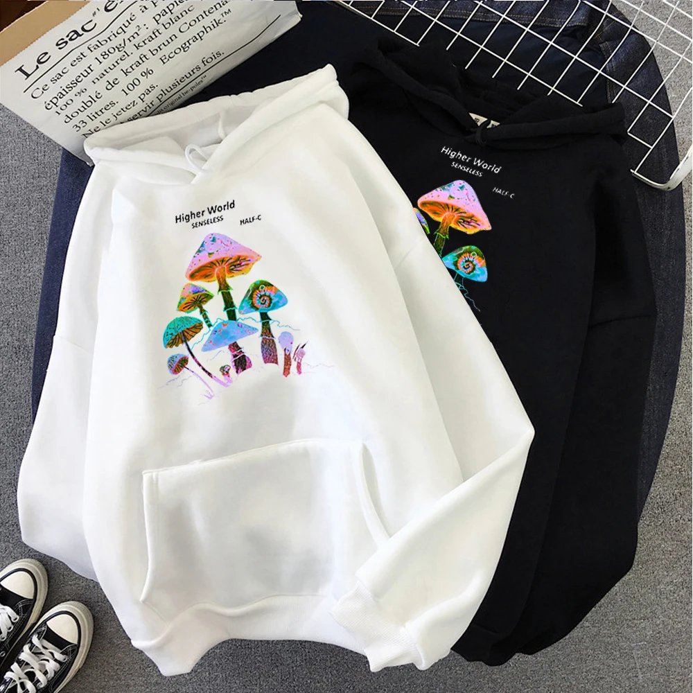 Женская толстовка с капюшоном и принтом в виде цветных грибов