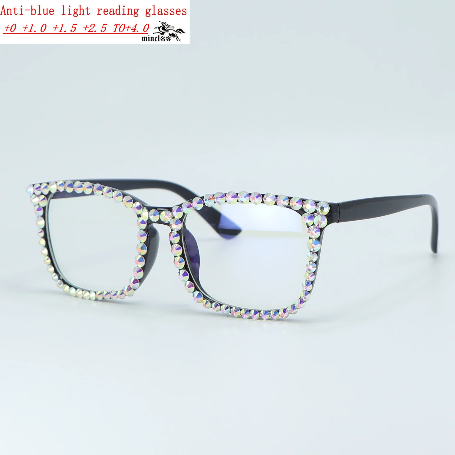 Новинка 2022, женские квадратные очки для чтения, очки с блестящими стразами в черной оправе, очки с защитой от сисветильник NX