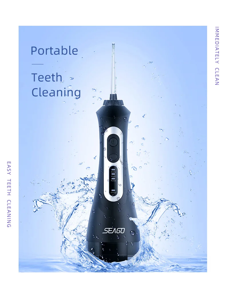 Ирригатор полости рта SEAGO, Портативный Стоматологический Ирригатор, перезаряжаемый от USB, 3 режима, степень защиты IPX7, 200 мл, вода для чистки зубов