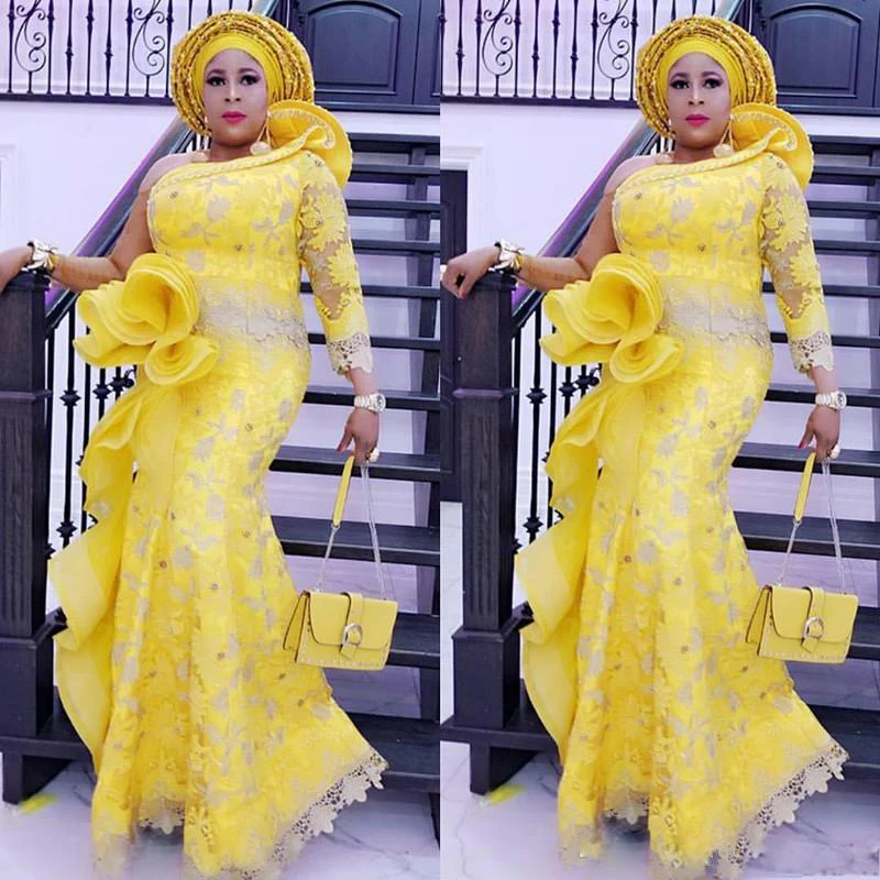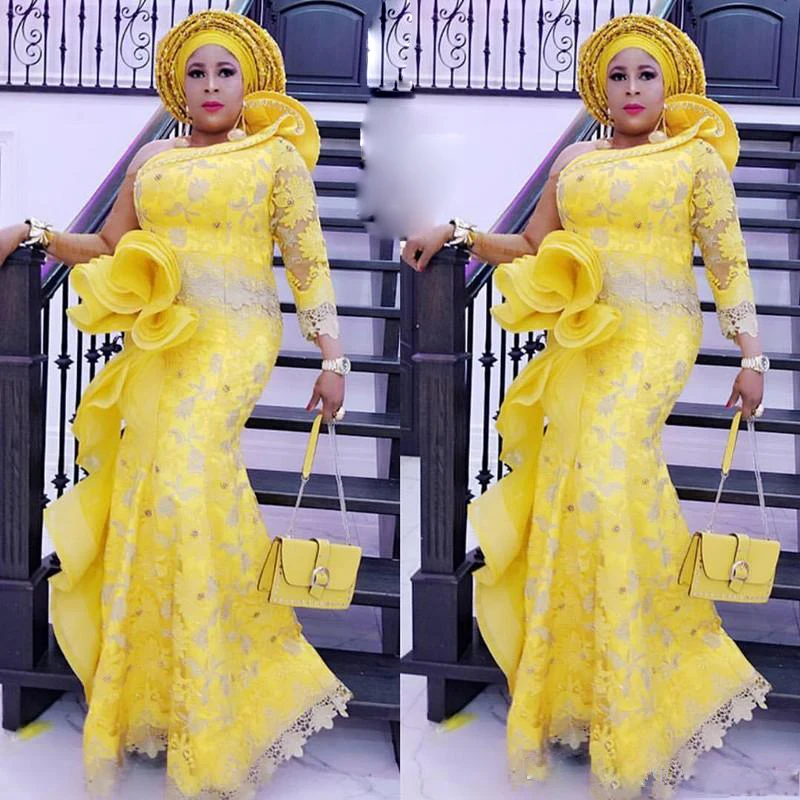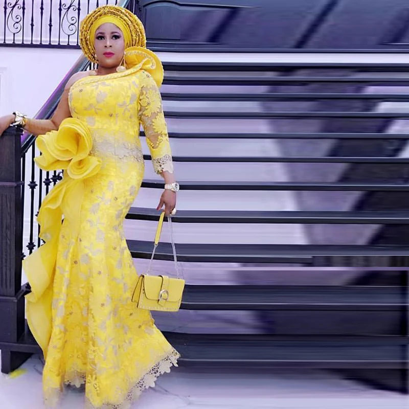 Желтое платье в африканском стиле для выпускного вечера с длинными рукавами и бусинами