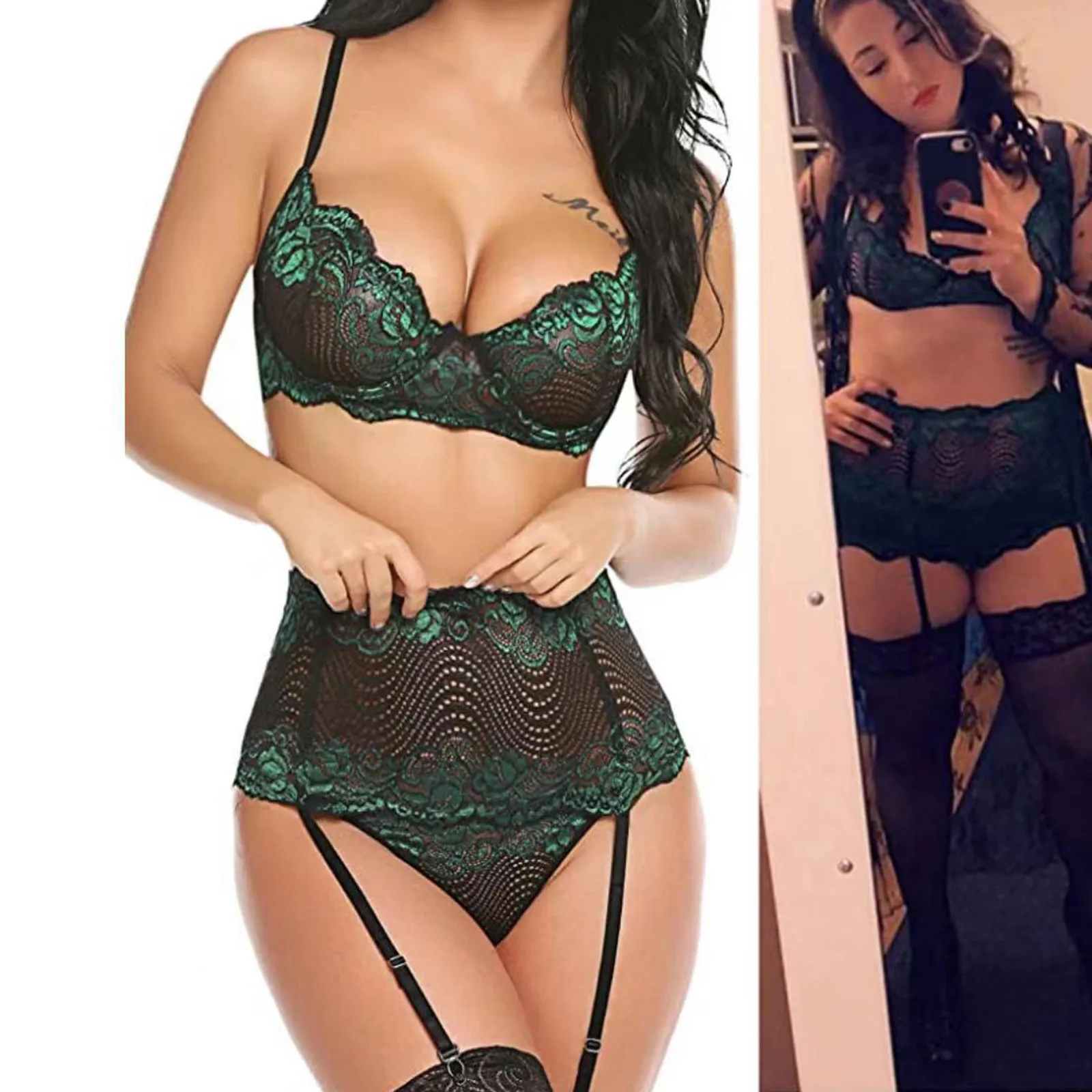 Женский комплект из бюстгальтера и трусиков, Привлекательный бюстгальтер, эротическое нижнее белье, прозрачное кружевное горячее эротическое белье, стринги, пояса с подвязками, комплект из 3 предметов, 2022
