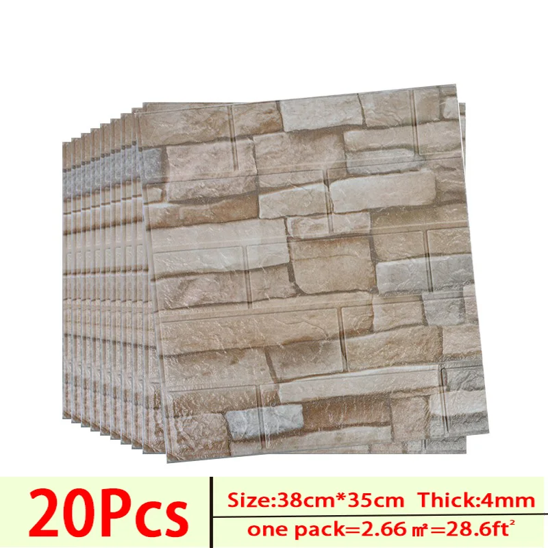 3D кирпичные настенные Стикеры, настенные украшения для гостиной, спальни, телевизора, водонепроницаемые самоклеящиеся настенные Стикеры из пены XPE, 20 шт.