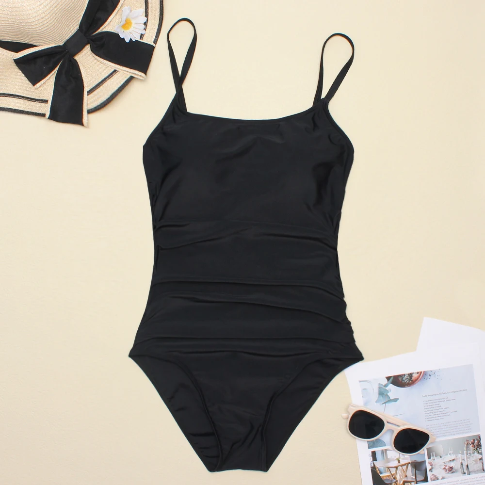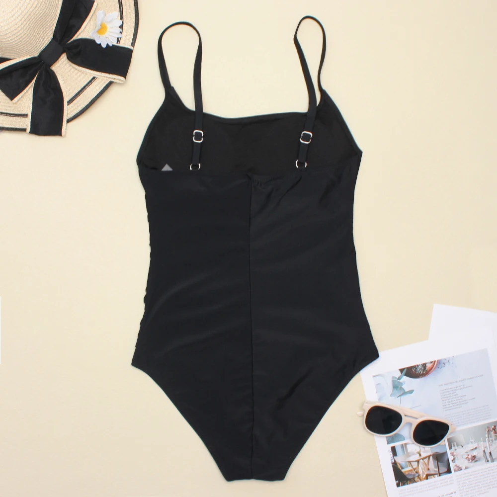 Черный летний купальник, однотонный Цельный купальник, сексуальный купальный костюм, Винтажная летняя пляжная одежда, боди с контролем живота, Размеры S XXL