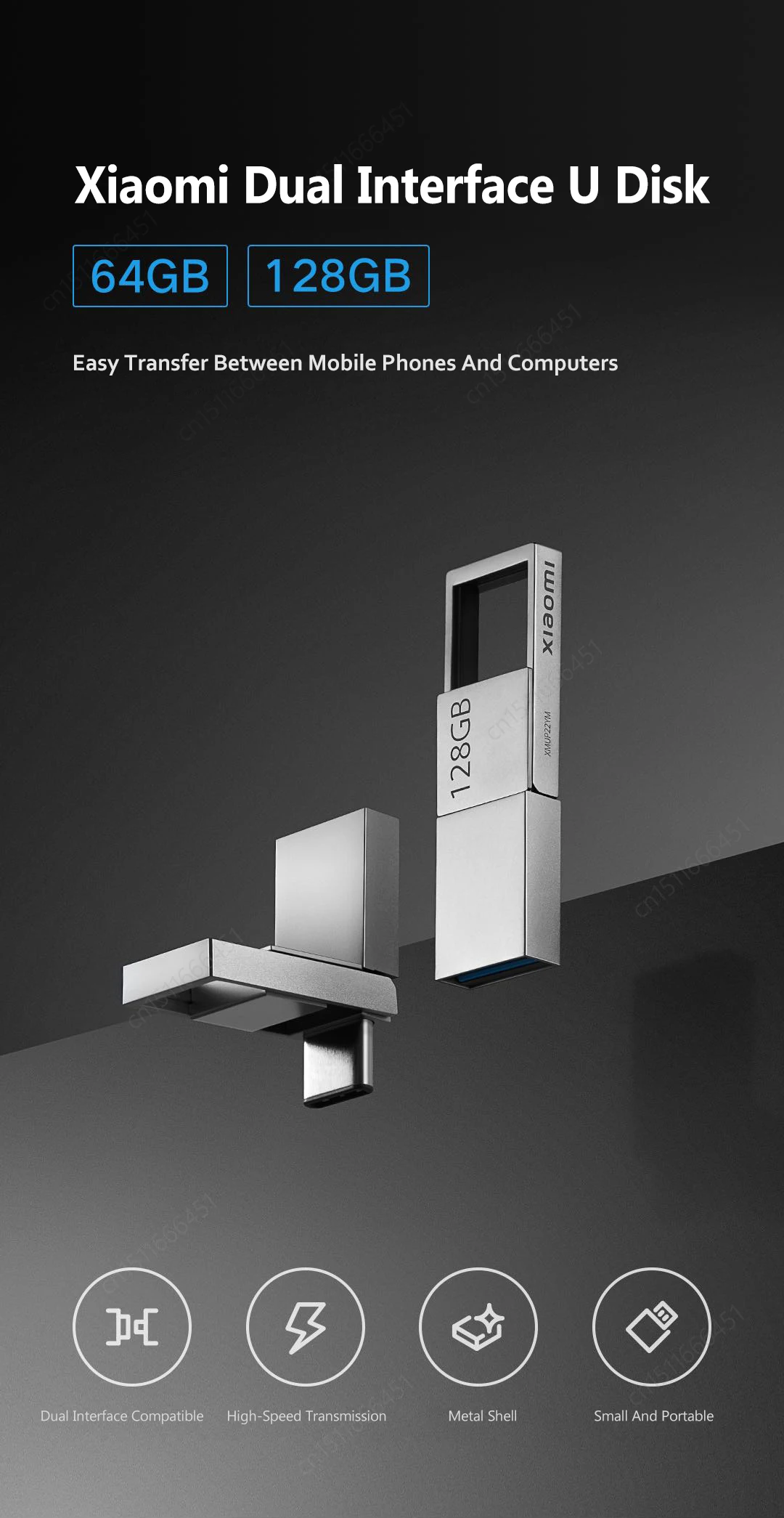 Портативный U-диск Xiaomi с двумя интерфейсами, 64 ГБ128 ГБ, USB 3,...