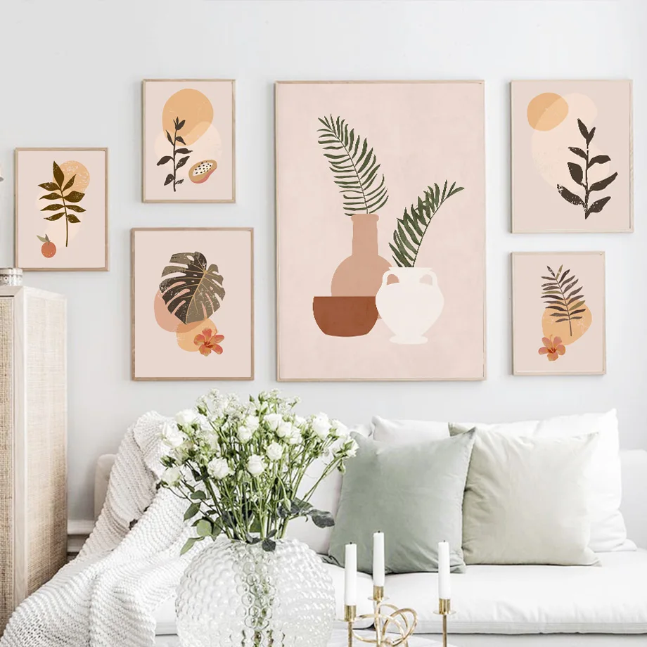 Monstera ваза папайя цветок Пальма Бохо растение Настенная живопись холст скандинавский ВИНТАЖНЫЙ ПЛАКАТ ПЕЧАТЬ картинки для декора гостиной