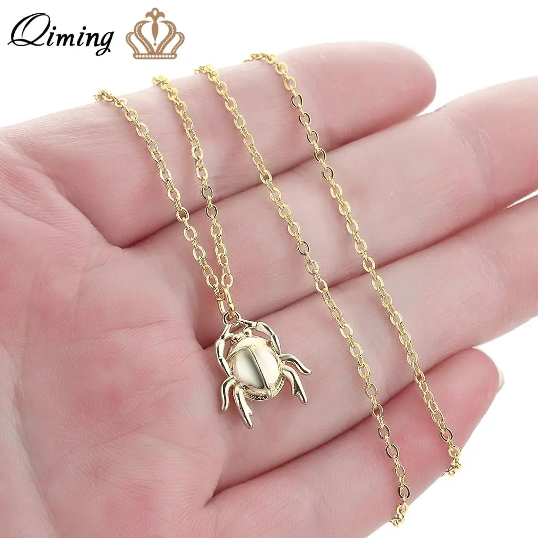 QIMING золотистый цвет крошечный Жук ожерелье с подвеской для женщин женские изящные ювелирные изделия насекомое животное винтажное ожерелье подарок