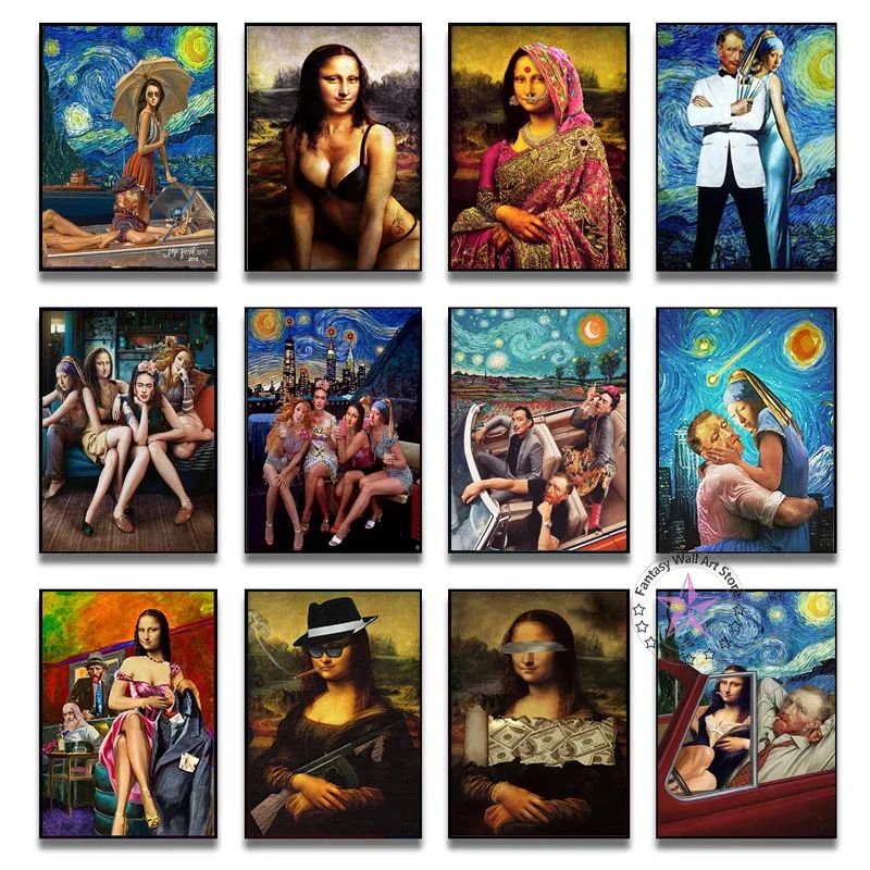 Забавные абстрактные картины на холсте от Van Gogh, Мона Лиза, плак...