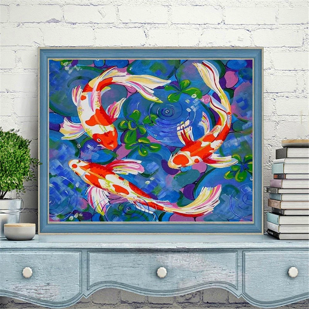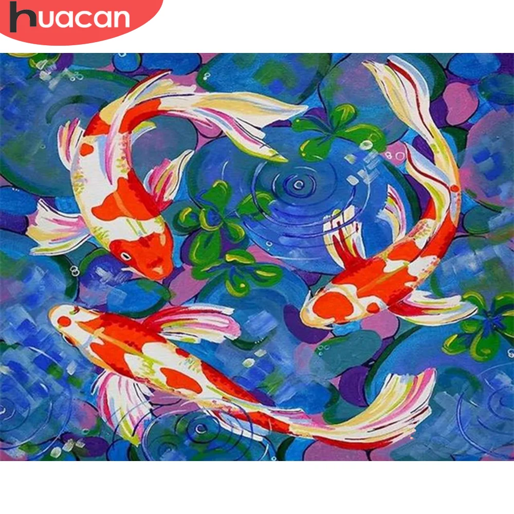 HUACAN краска по номеру животное настенная живопись на холсте DIY рамка картина по номерам рыба акриловый холст украшение дома 75х60см