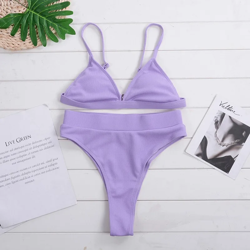 PLAVKY сексуальный однотонный ребристый треугольный топ с высокой т...