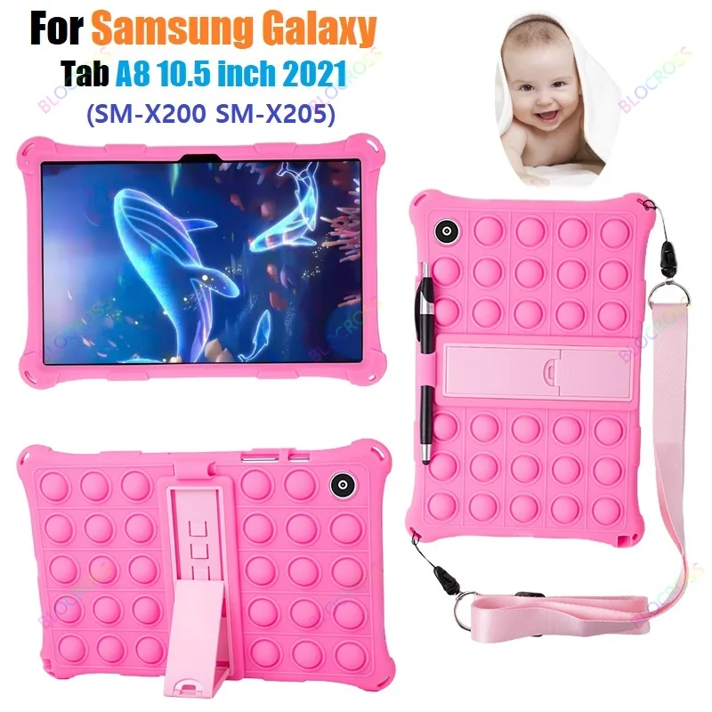Пузырьковый силиконовый чехол для Samsung Galaxy Tab A8 10,5 2021 планшетный ПК с подставкой для Samsung SM-X200 X205 с ремешком