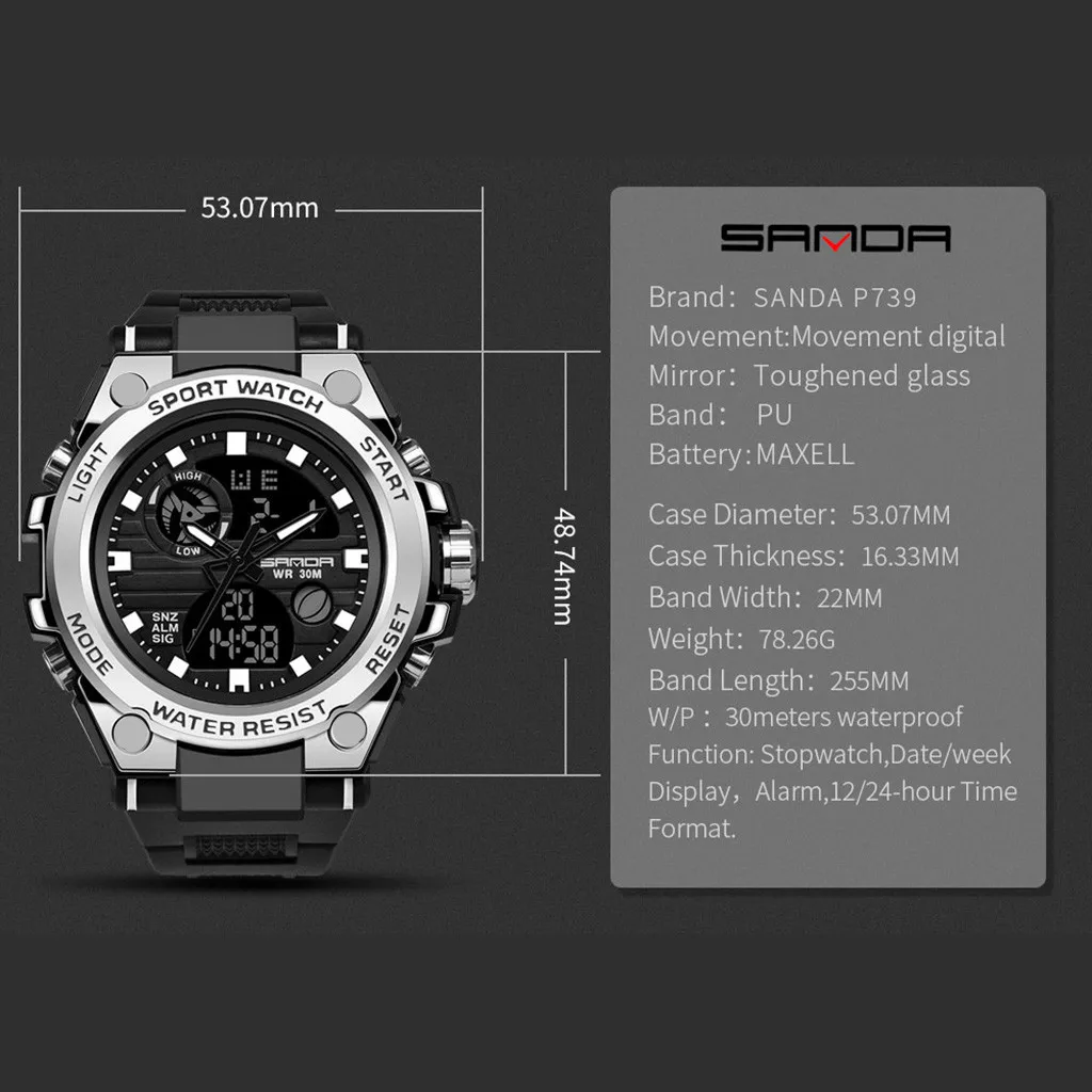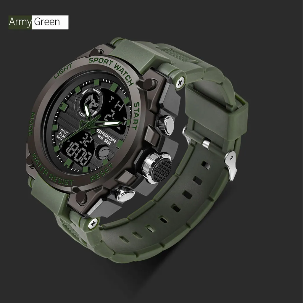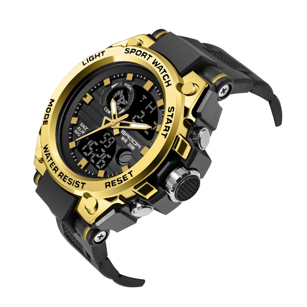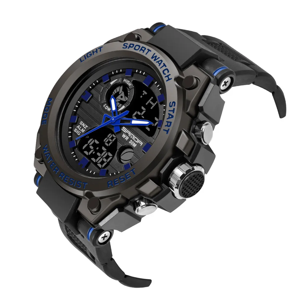 Часы наручные Sanda мужские спортивные, роскошные аналоговые цифровые светодиодные электронные, с двойным дисплеем