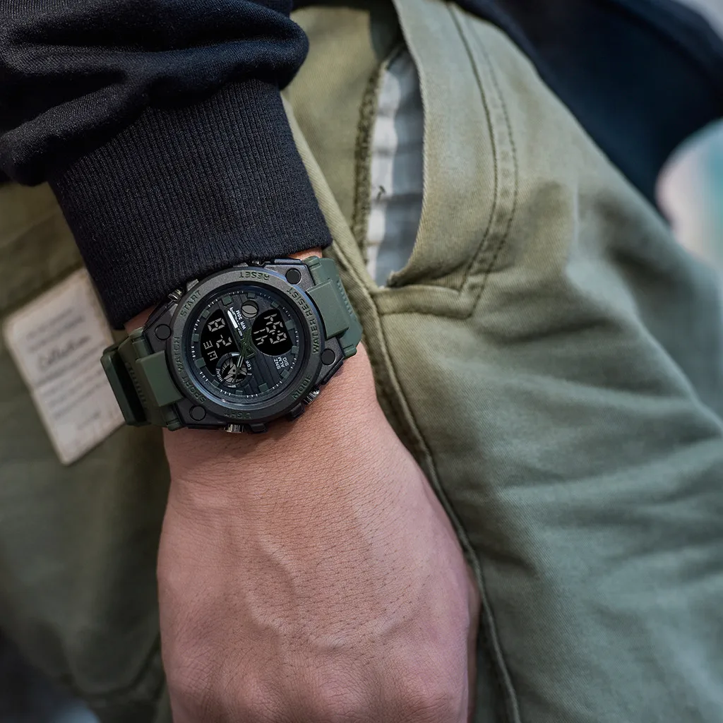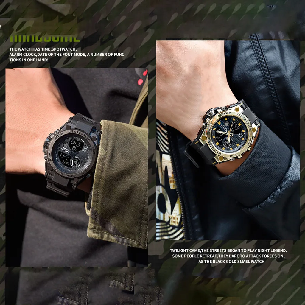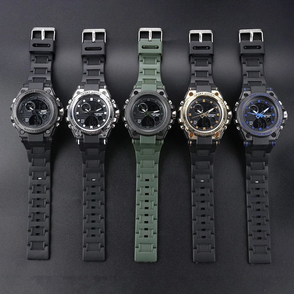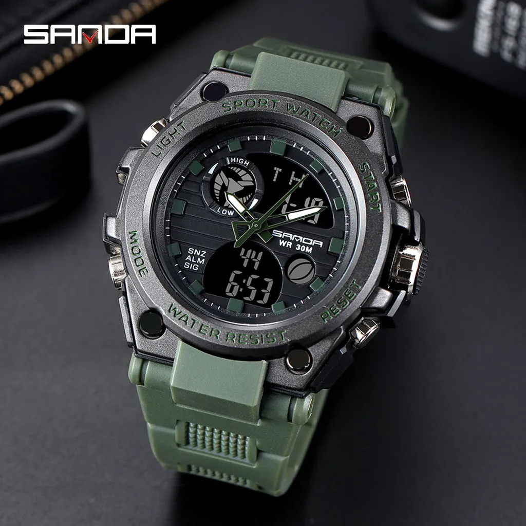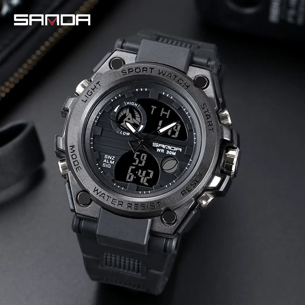 Часы наручные Sanda мужские спортивные, роскошные аналоговые цифровые светодиодные электронные, с двойным дисплеем