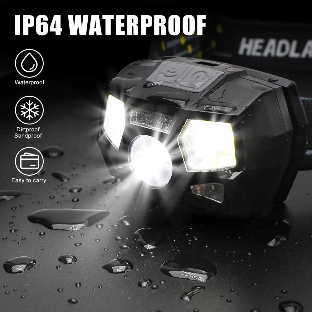 Налобный фонарь с датчиком, Ультраяркий светодиодный налобсветильник фонарь, Головной фонарь с зарядкой от USB, налобный фонарь, водонепроницаемый налобный фонарь для кемпинга и рыбалки