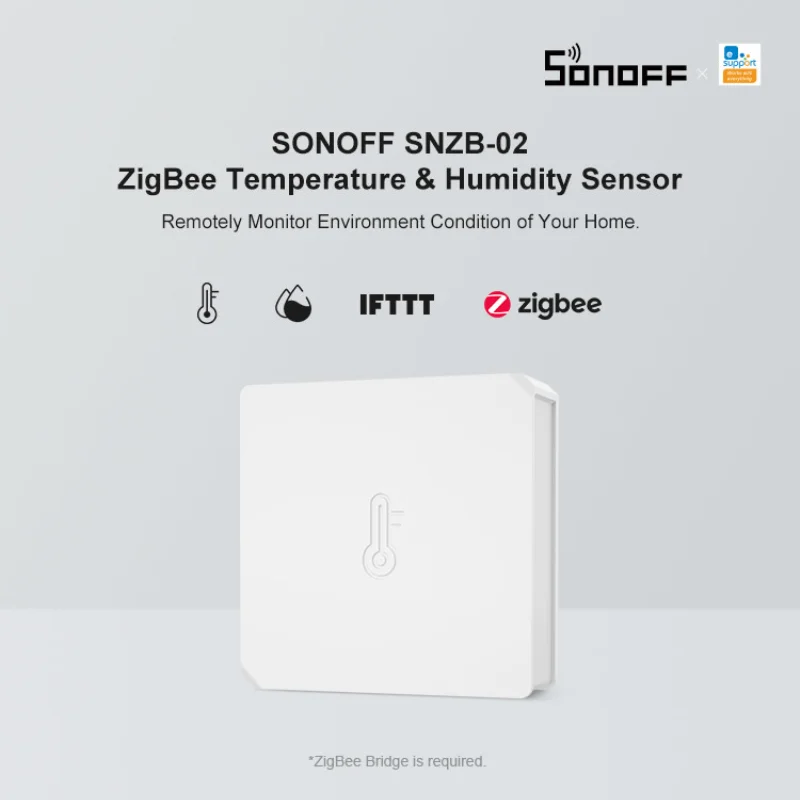 Примечание 1: некоторым логистическим каналам (например, Aliexpress прямой/специальной линии-YW Почта Китая Registered Air Mail/SF eParcel) не разрешается переносить аккумуляторы. Для того, чтобы гарантировать, что товары могут быть отправлены, мы Вынимаем батареи, а затем доставляем. Пожалуйста, поймите. Если у вас есть какие-либо вопросы, пожалуйста, обратитесь в службу поддержки клиентов.Примечание 2: SNZB-02 должны использоваться с мостом Zigbee.SONOFF SNZB-02-это датчик температуры и влажности ZigBee, который может легко работать с мостом SONOFF ZigBee для отслеживания и записи изменения температуры и влажности в вашем доме, что позволяет проверять все показания в реальном времени в приложении eWeLink. Еще лучше, вы можете установить состояние в смарт-сцене, что Вентилятор включается/выключается, когда температура достигает предельного значения, или осушитель воздуха в вашей комнате начинает работать, когда влажность выше, помогая предотвратить рост плесени и аллергенов. Вы можете установить умную сцену для запуска оповещений через такие события, как высокая/низкая температура, высокая/низкая влажность и многое другое.Функция обмена устройствами позволяет вашим детям, семье и даже соседям получать информацию об условиях окружающей среды вашего дома с помощью своих мобильных телефонов.Функция камеры доступна на сенсоре, чтобы вы знали, что происходит в вашем доме. Это оставляет за собой время для принятия мер, если возгорает опасность. Это датчик, работающий от батареи, который может быть помещен в любом уголке вашего дома для контроля комнатной температуры и влажности. Установка без каких-либо инструментов, просто приклейте датчик на поверхность стены или устройства и посмотрите его красиво, чтобы работать для вас!
