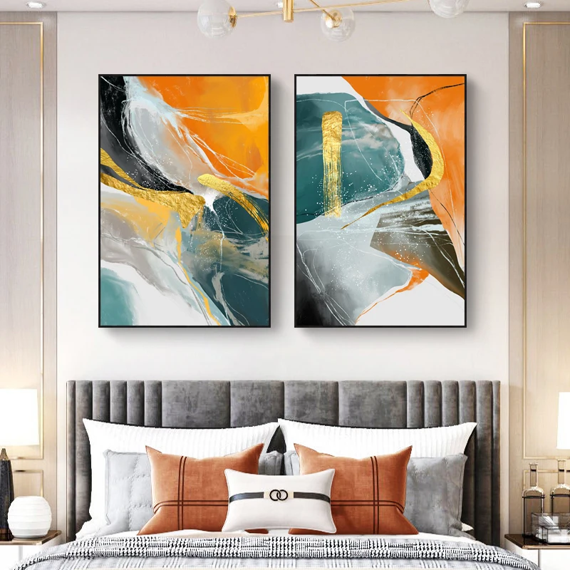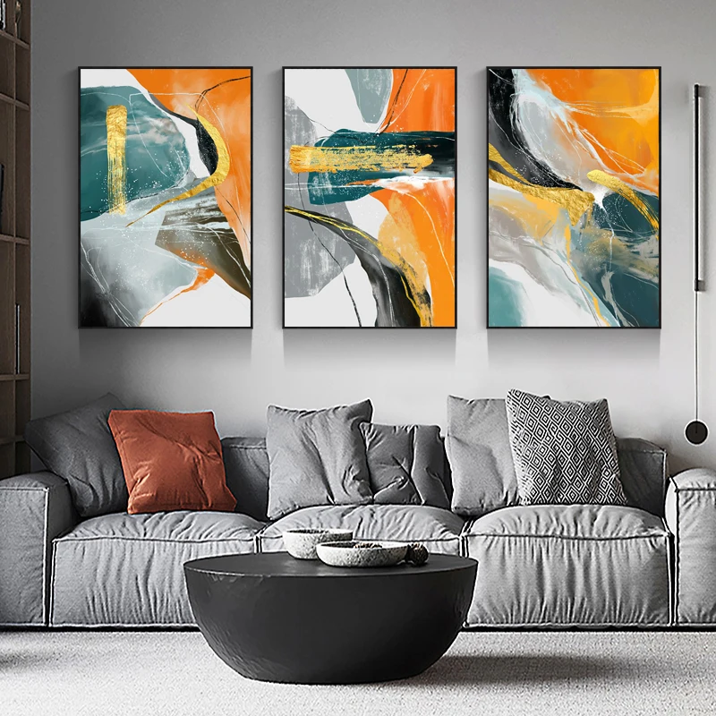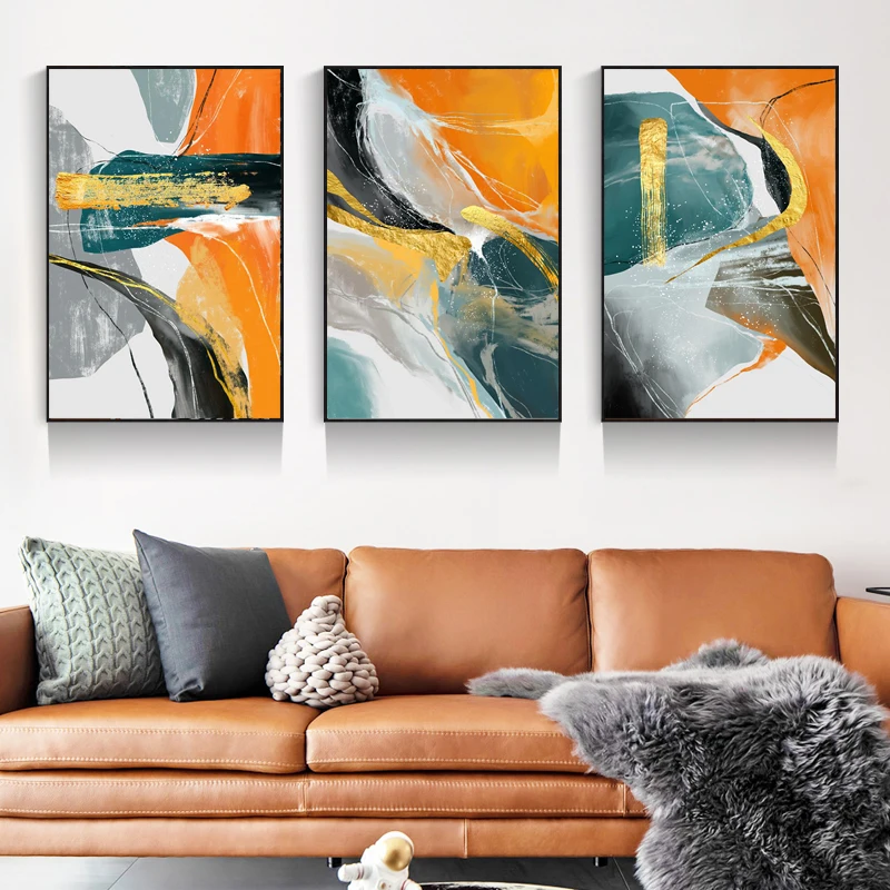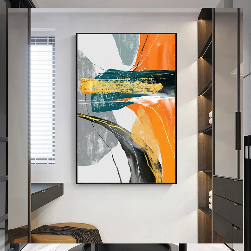 Абстрактная картина оранжевого цвета на холсте для интерьера постер с золотыми линиями из фольги настенные картины для гостиной офиса домашний декор
