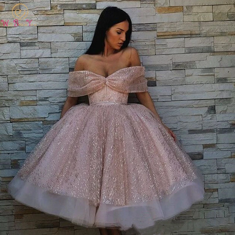 Бальное платье для выпускного вечера блестящее платье с открытыми плечами и V-образным вырезом до колен Вечерние платья для вечеринки вечернее танцевальное платье для гостей свадьбы с блестками