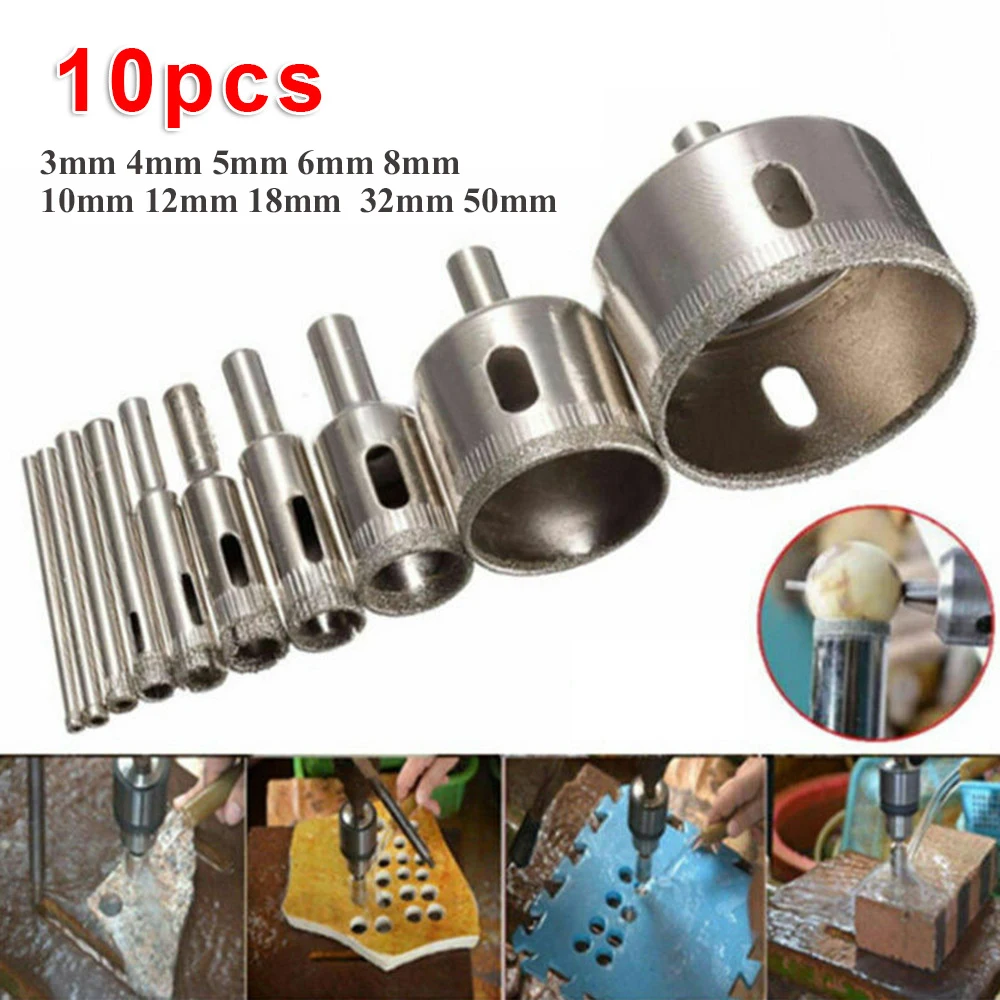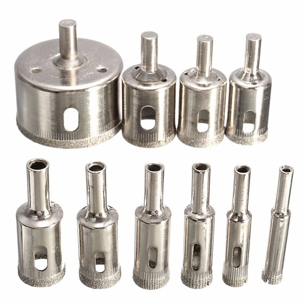Алмазное сверло с покрытием 10 шт., коронка для отверстий со стеклянным сердечником для стеклянной керамической плитки, мрамора, электроинструменты для сверления