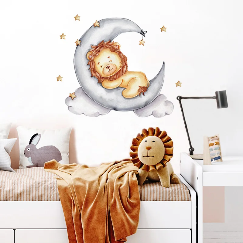 Мультяшные золотые львины, спящие на Луне, наклейки на стену хорошей ночи для детской комнаты, украшение детской комнаты, художественные настенные наклейки, фрески