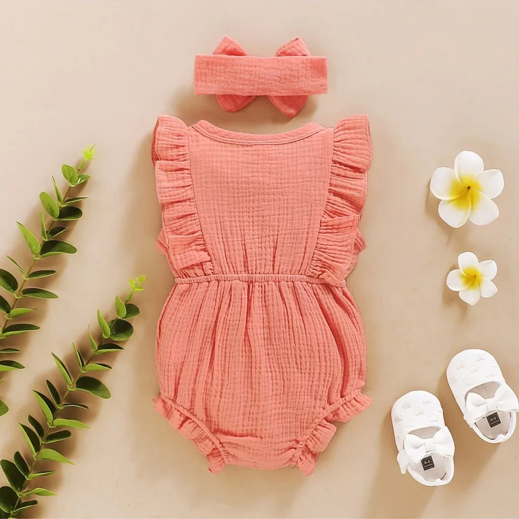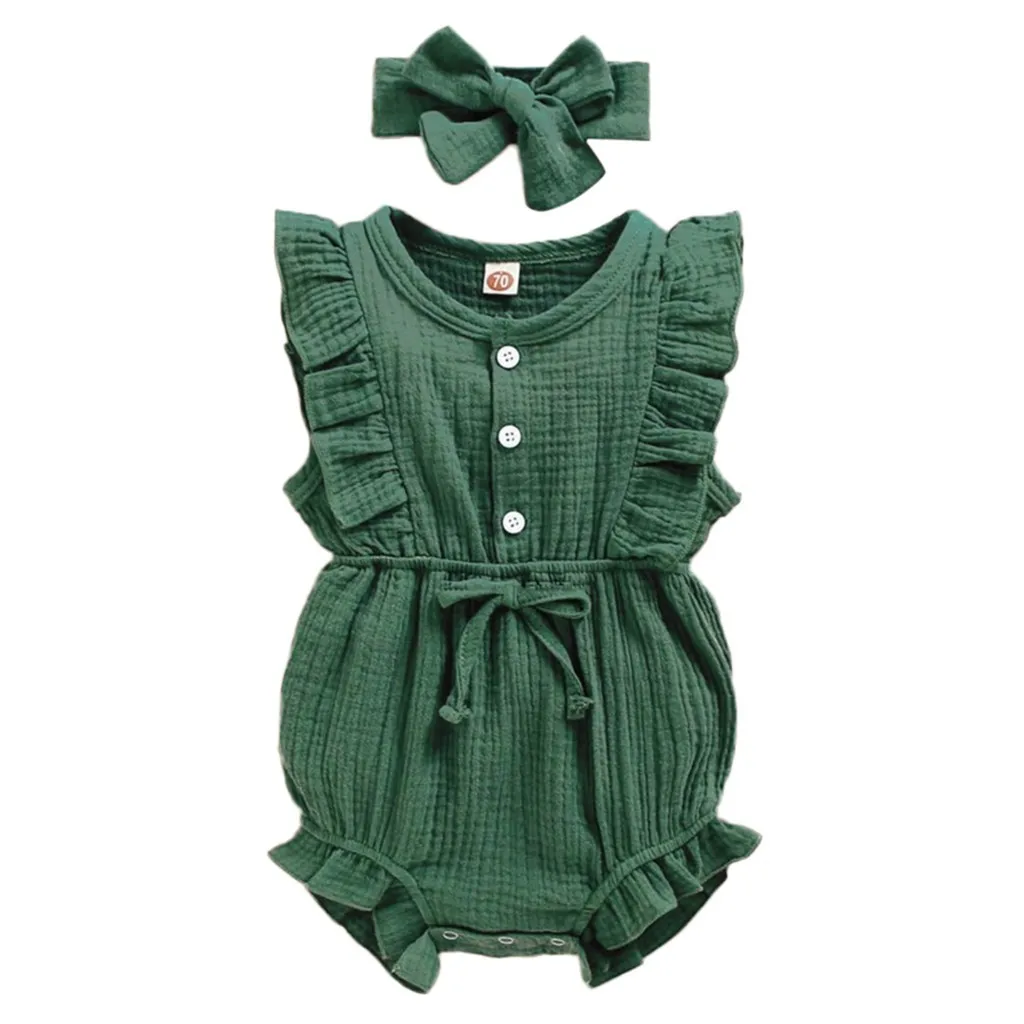 Номер моделиBaby Kids Girls Sleeveless Ruffle Button Romper jumpsuit+Headband