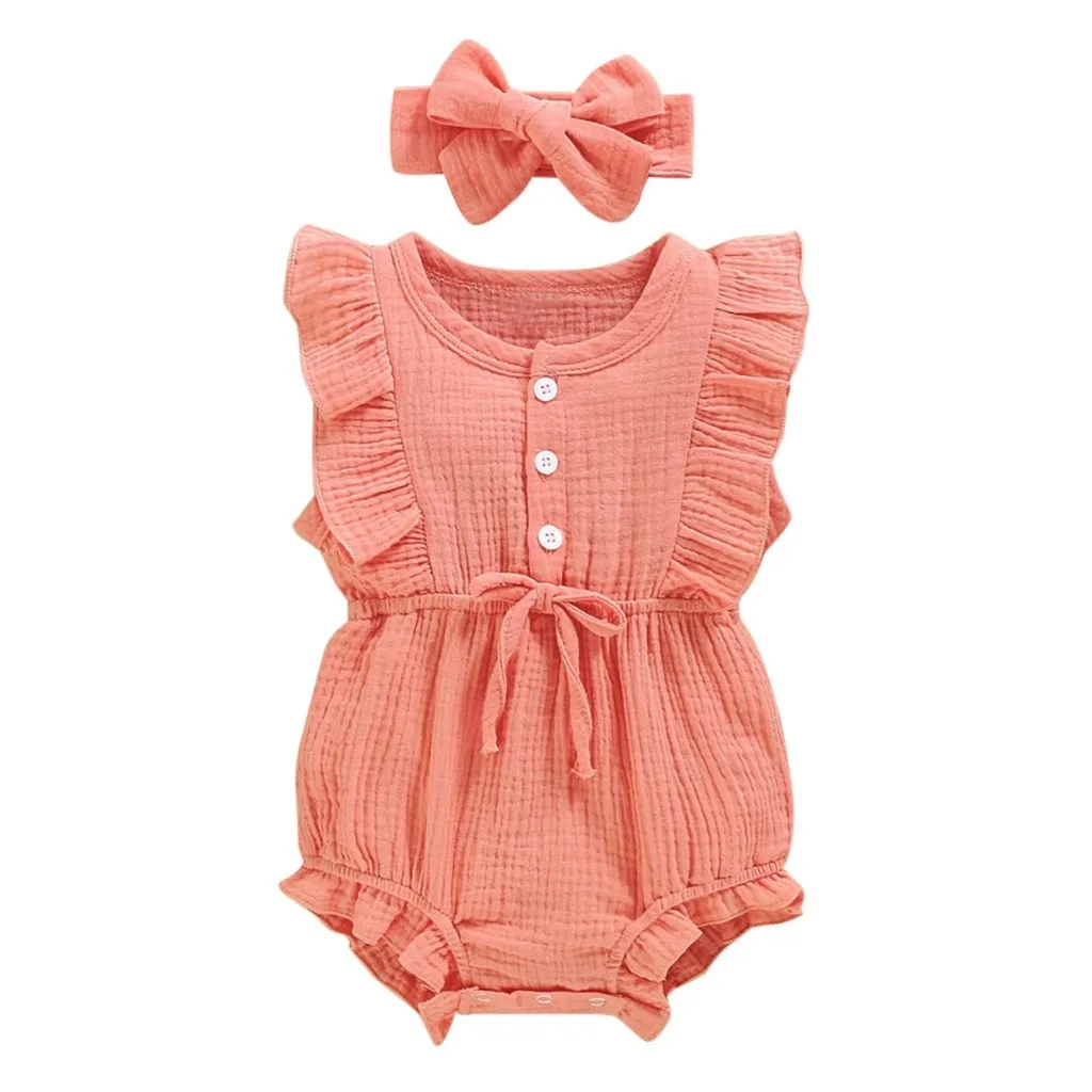 Детская одежда для девочек, без рукавов, гофрированное, с пуговицами детский комбинезончик + оголовье, набор