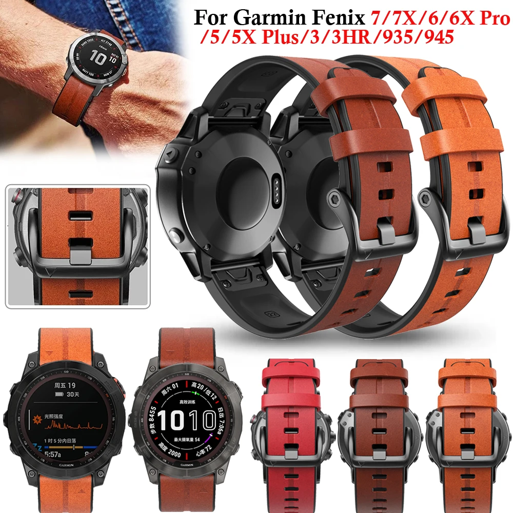 Кожаный Смарт-браслет для часов Garmin Fenix 6X 6 Pro 5X 5 Plus 7X 7 ремешки для часов Quick Release 22 26 мм ремешки Fenix 3 3HR 945 Correa