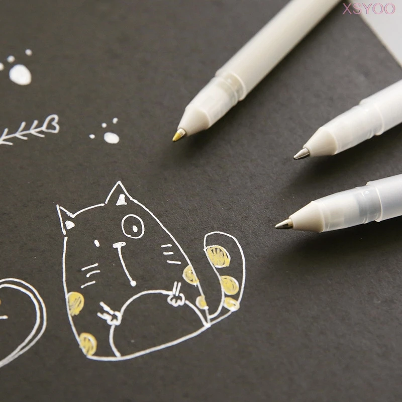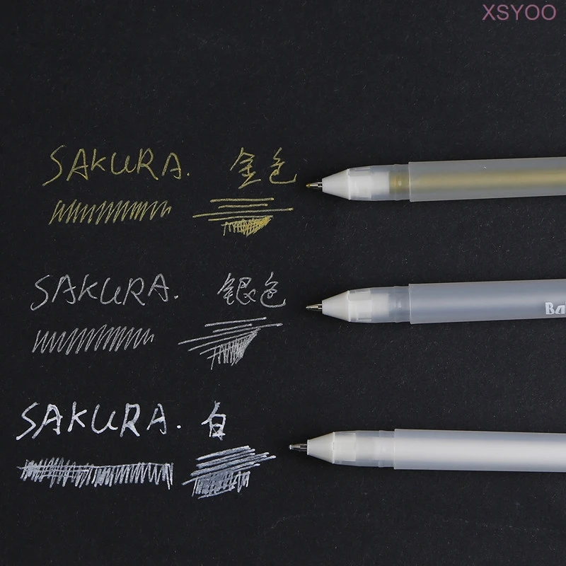 Sakura, 3 цвета, гелевый рулон, Классическая Ручка, гелевые чернила, ручки, яркие, золотые, серебристые, белые, линия, ручка для подсветки, школьные принадлежности