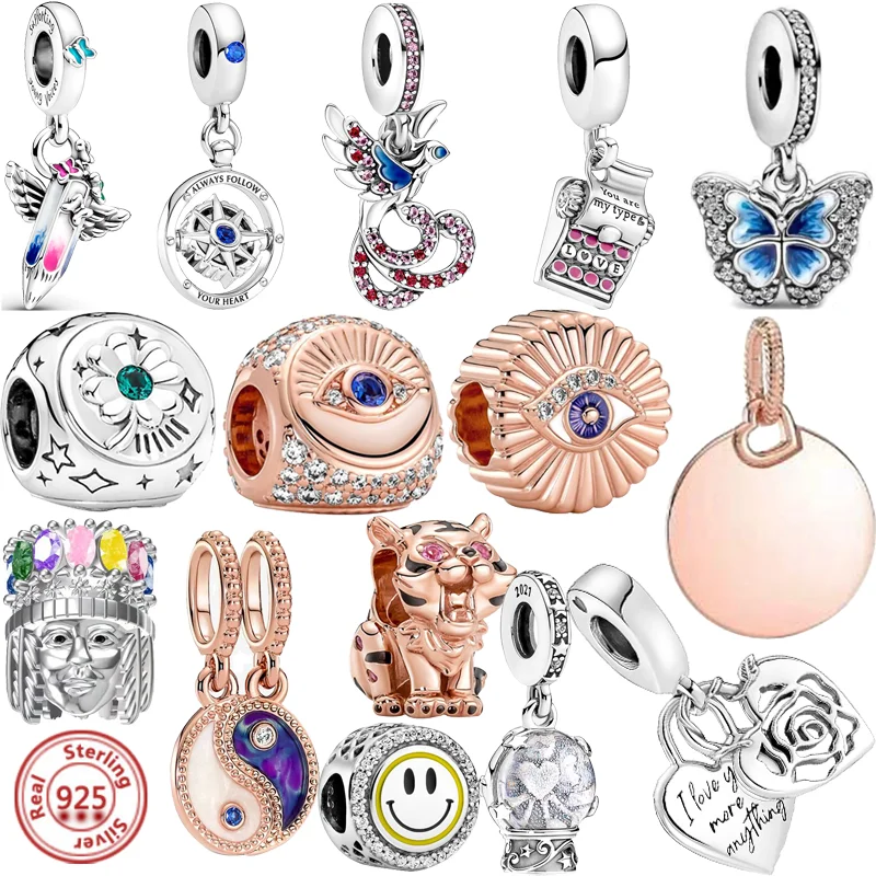 Новинка, серебро 925 пробы, фотографический компас, принтер, подвеска, очаровательные бусины Pixiu, тигровый глаз, подходят к оригинальному браслету Pandora, ювелирные изделия