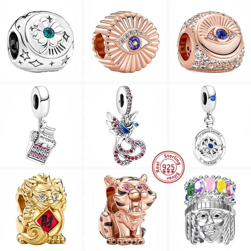 925 Серебряный шеф Китайский тигр пиксиу компас мифический Феникс трехсторонние бусины для глаз подходят для оригинальных браслетов Pandora шармы Ювелирные изделия