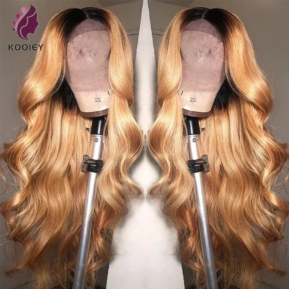 Парик 1b 27 с эффектом омбре и волнистыми светлыми волосами 13x4, парик с предварительно выщипанным шелковым топом, парик из человеческих волос для женщин, Отбеленный узел