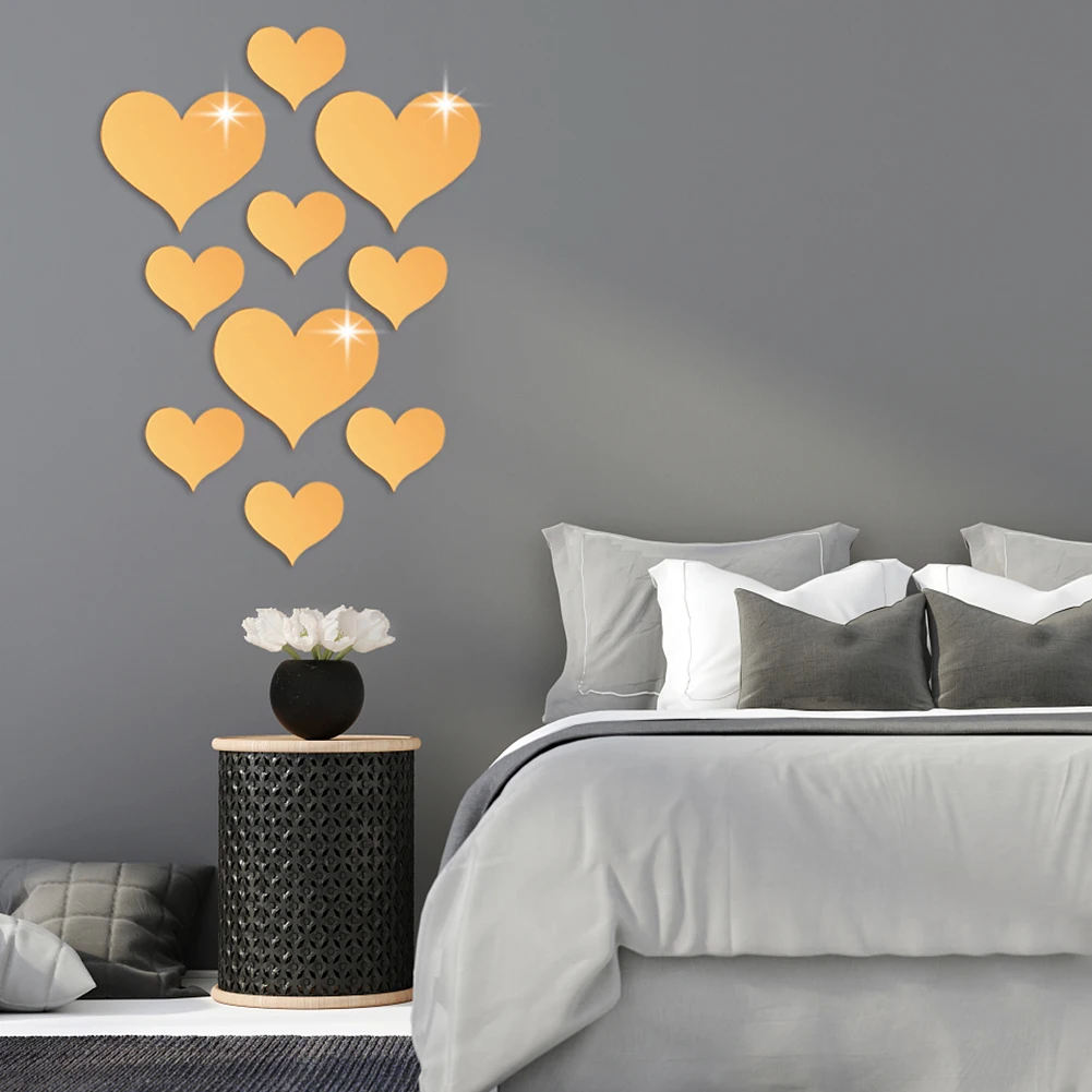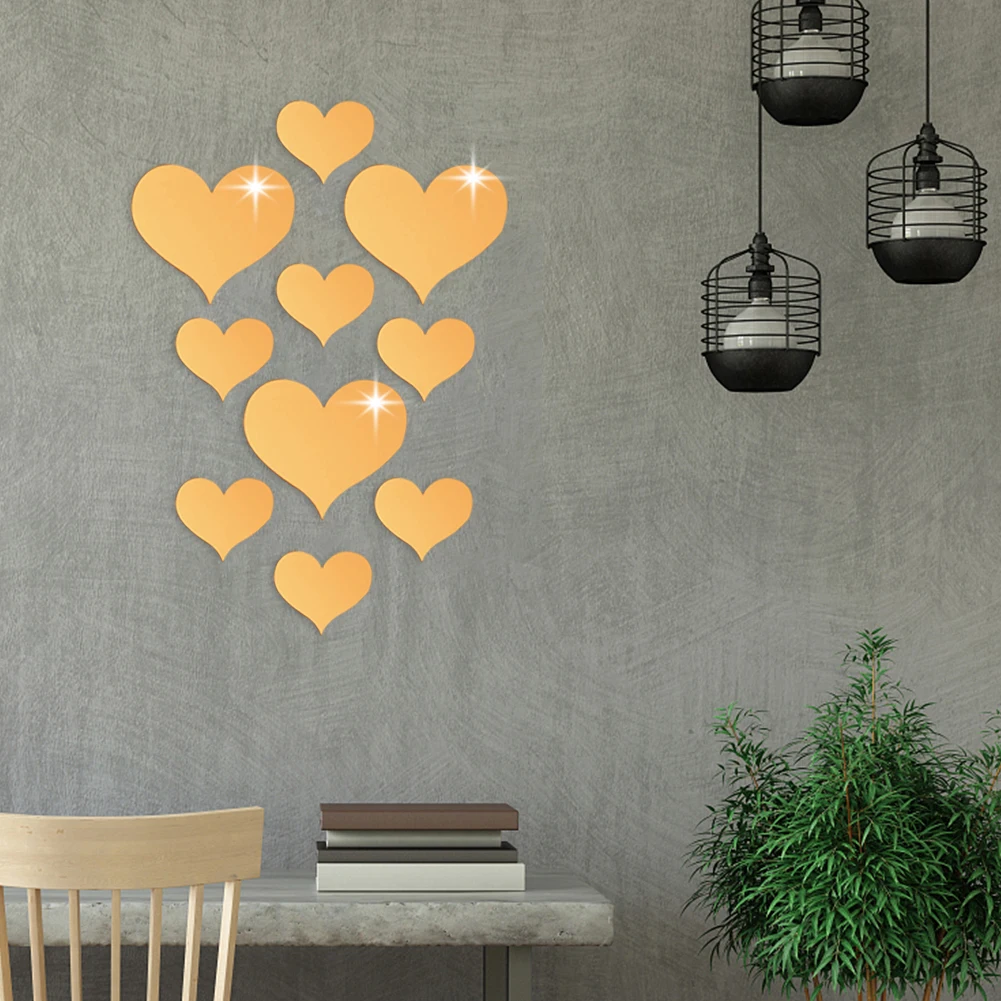 10 шт., зеркальные Акриловые Настенные 3d-наклейки в форме сердца