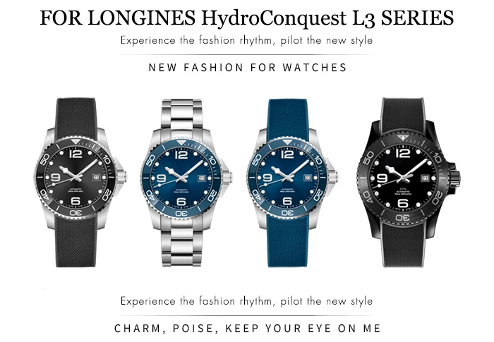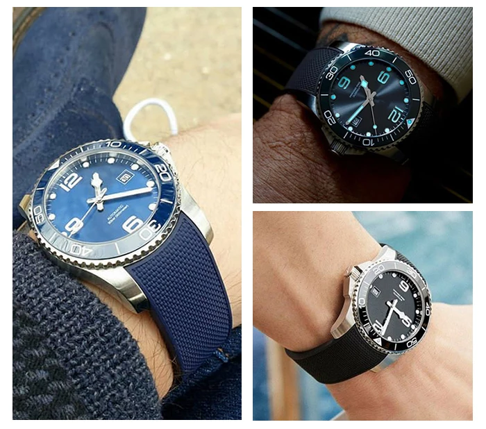 Ремешок силиконовый для часов, резиновый водонепроницаемый браслет для Longines master Conquest HydroConquest L3, черный, 19 мм 20 мм 21 мм