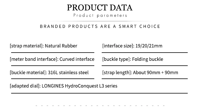 Ремешок силиконовый для часов, резиновый браслет для Longines Conqu...