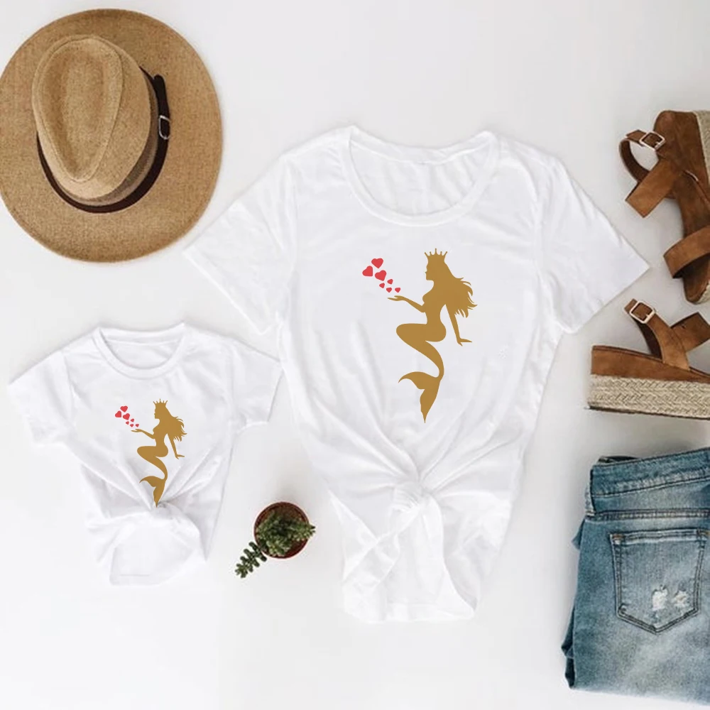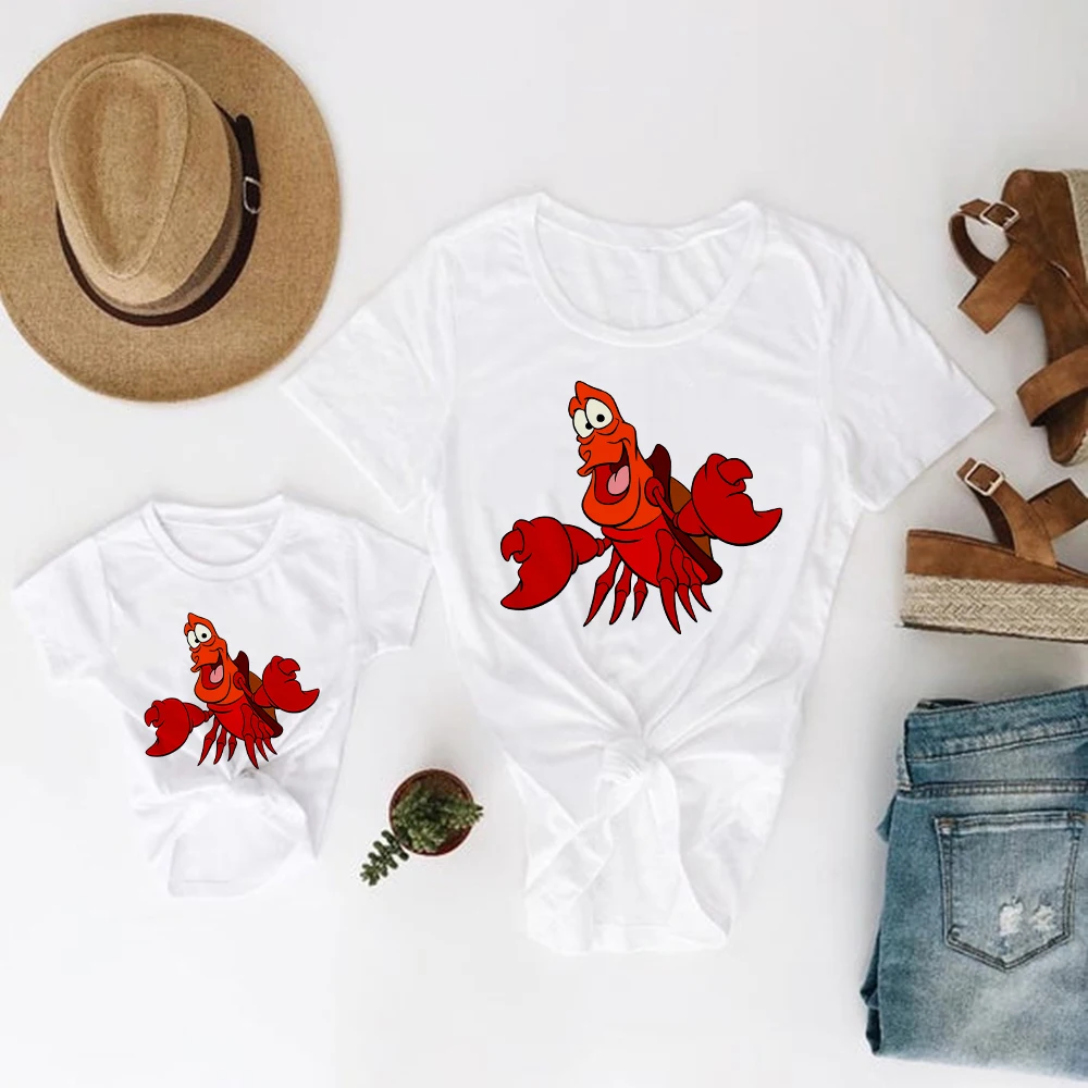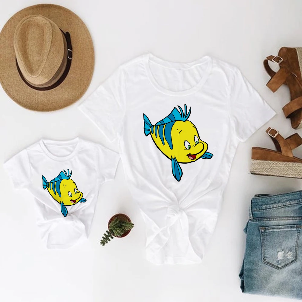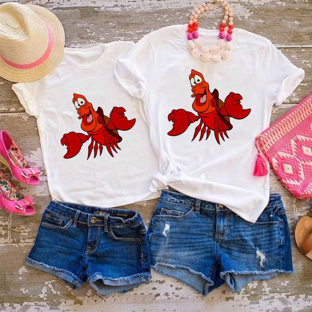 Летние футболки белого цвета с героями Диснея, популярная маленькая Русалочка, Женская Повседневная креативная детская семейная Эстетическая фирменная футболка с героями Диснея