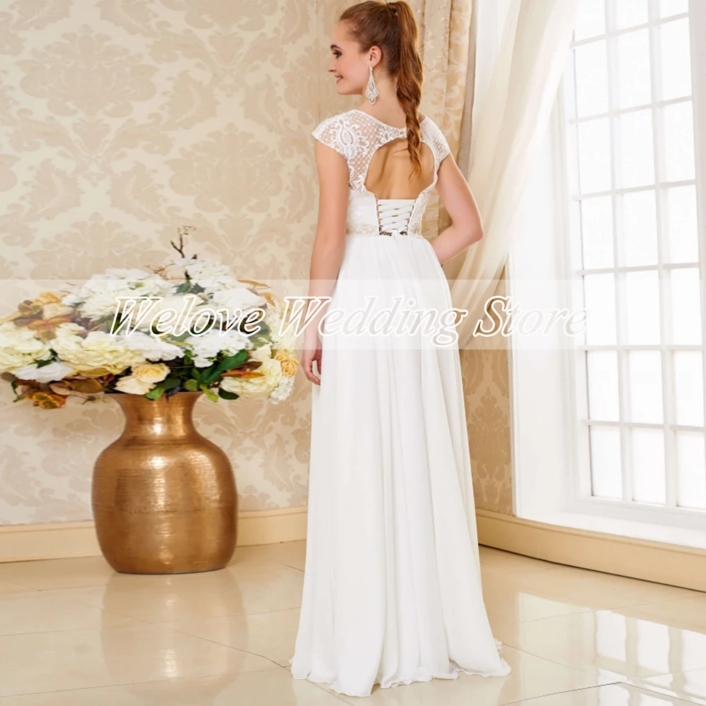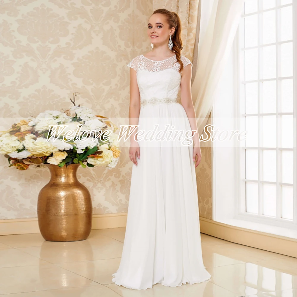 Простое шифоновое Свадебное платье до пола без рукавов, белое ТРАПЕЦИЕВИДНОЕ Свадебное платье с круглым вырезом и кружевным поясом, 2022