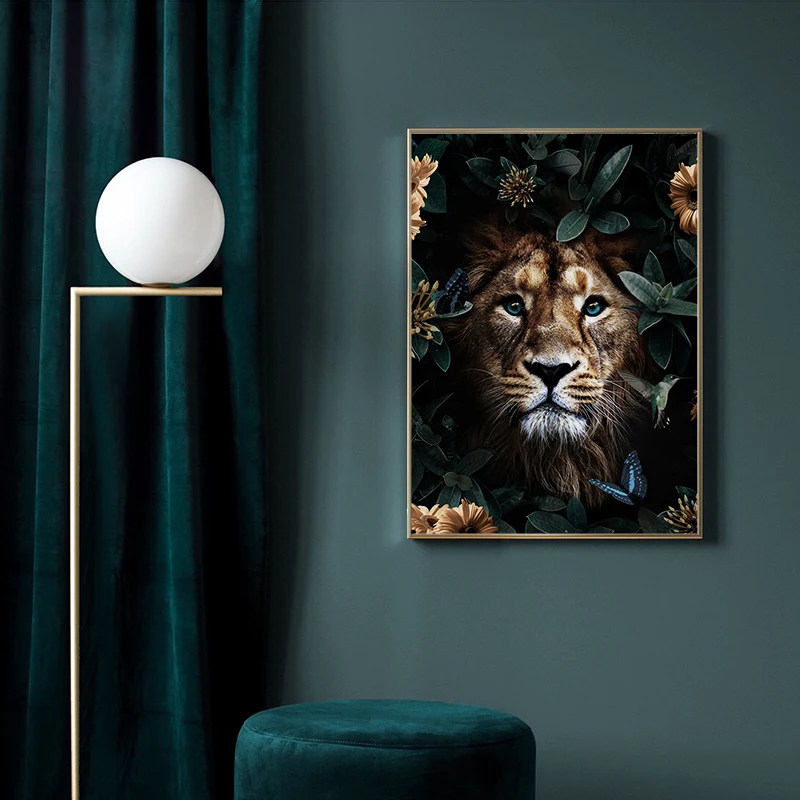 Цветочное животное, Лев, тигр, Леопардовый медведь, Абстрактная Картина на холсте, настенное искусство, скандинавский принт, постер, декоративная картина, декор для гостиной