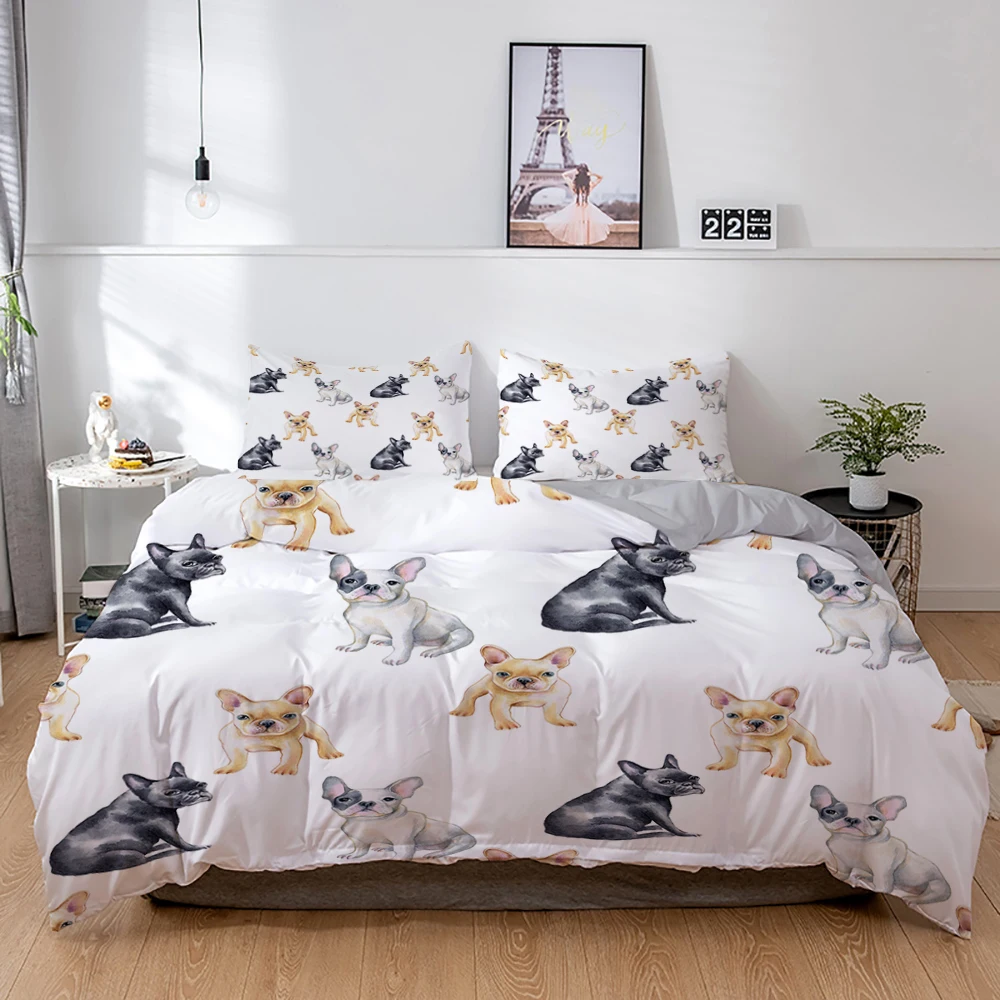 Комплект постельного белья с изображением французского бульдога, детское постельное белье для щенков, милый пододеяльникпододеяльник и наволочка, кавайные мальчики и девочки