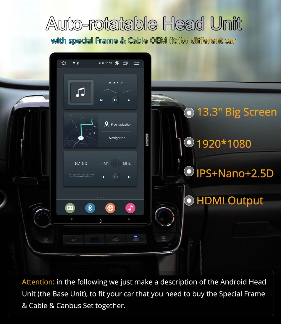 Автомагнитола, поворотная, 1920*1080, 13,3 дюйма, Ownice, Android 1...