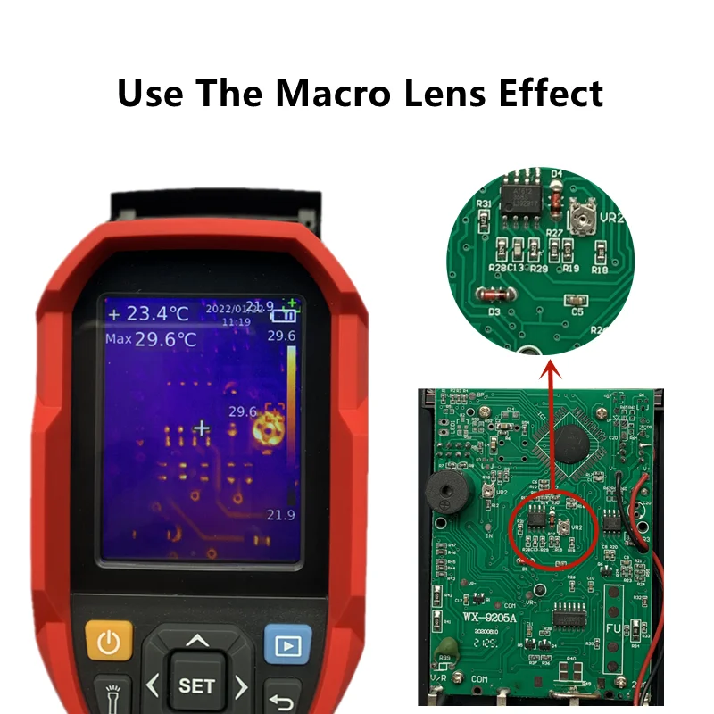 Нормальный тепловизор по своей цене. Для электронных плат обязательно берите с линзой для макросъёмки. Кстати, линзу придерживайте руками.