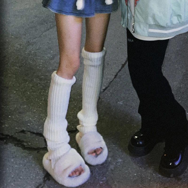 Наколенники в стиле лолита, демисезонные и зимние белые носки до середины икры, женские теплые длинные леггинсы, гетры в стиле панк