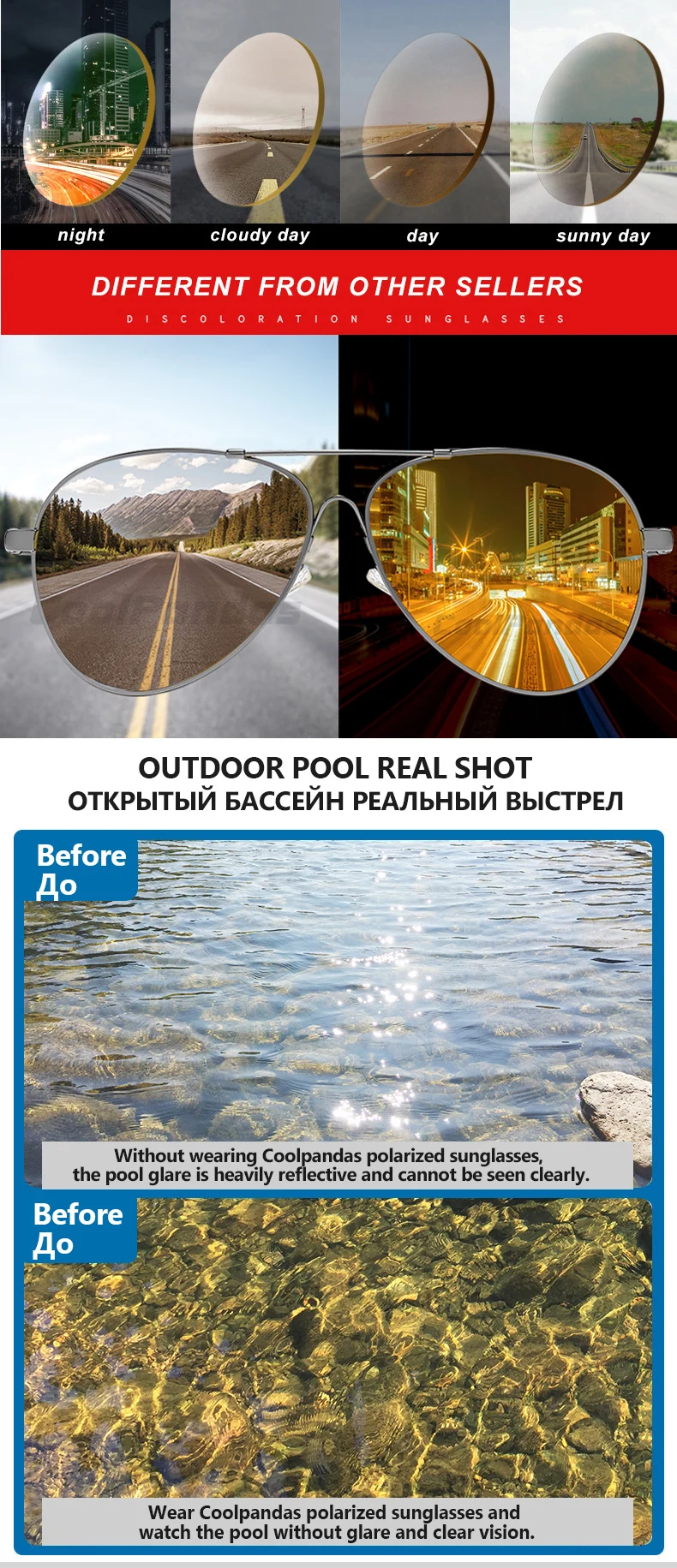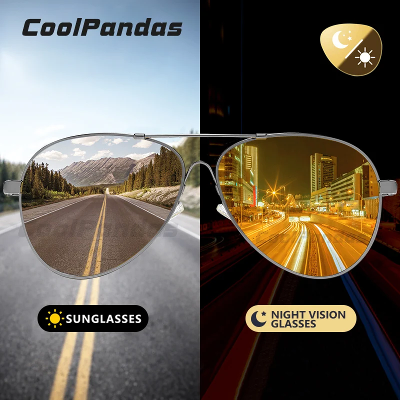 Солнцезащитные очки-авиаторы CoolPandas для мужчин и женщин, поляризационные фотохромные очки для вождения ночью