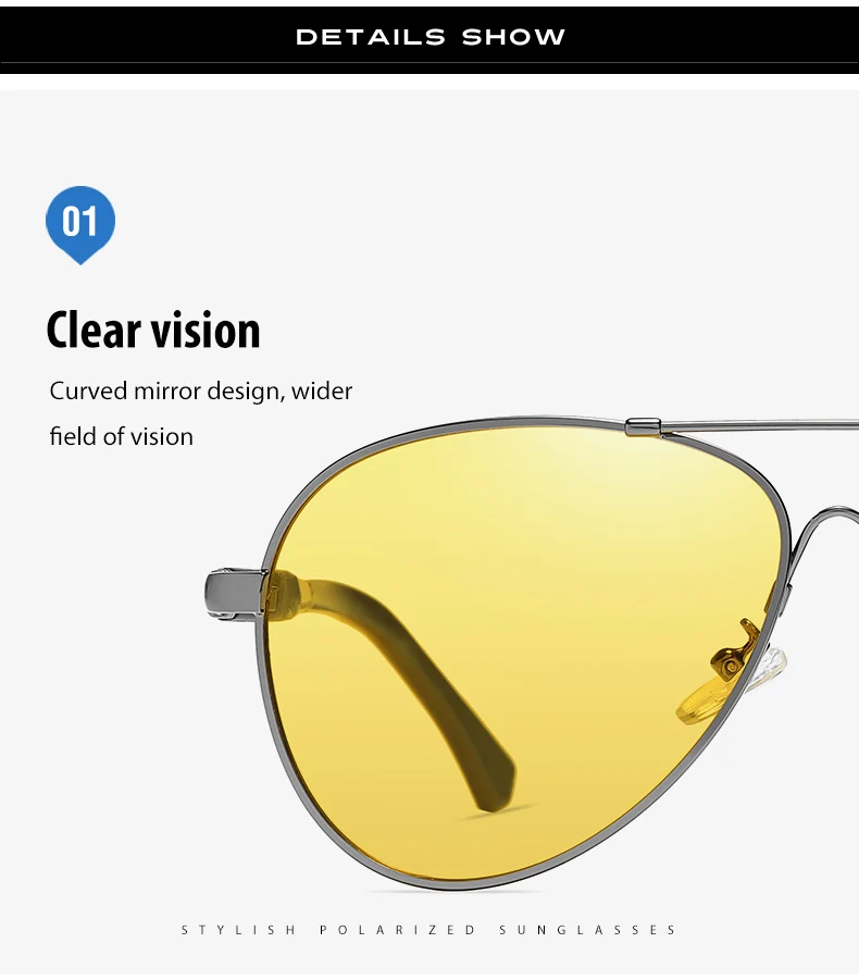 Очки солнцезащитные для ночного вождения, с оправой из алюминиево-м...