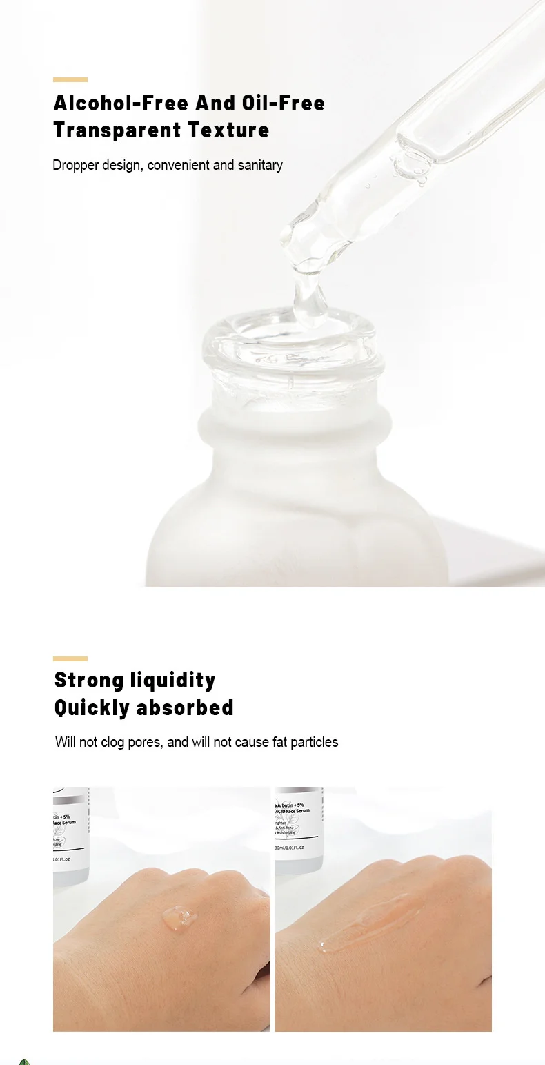 ▶Не содержит спирта и не содержит 0-бесплатно прозрачная 1 текстураДизайн капельницы, удобный и санитарный▶Высокая скорость поглощенияНе засоряет поры и не вызовет частицы жира