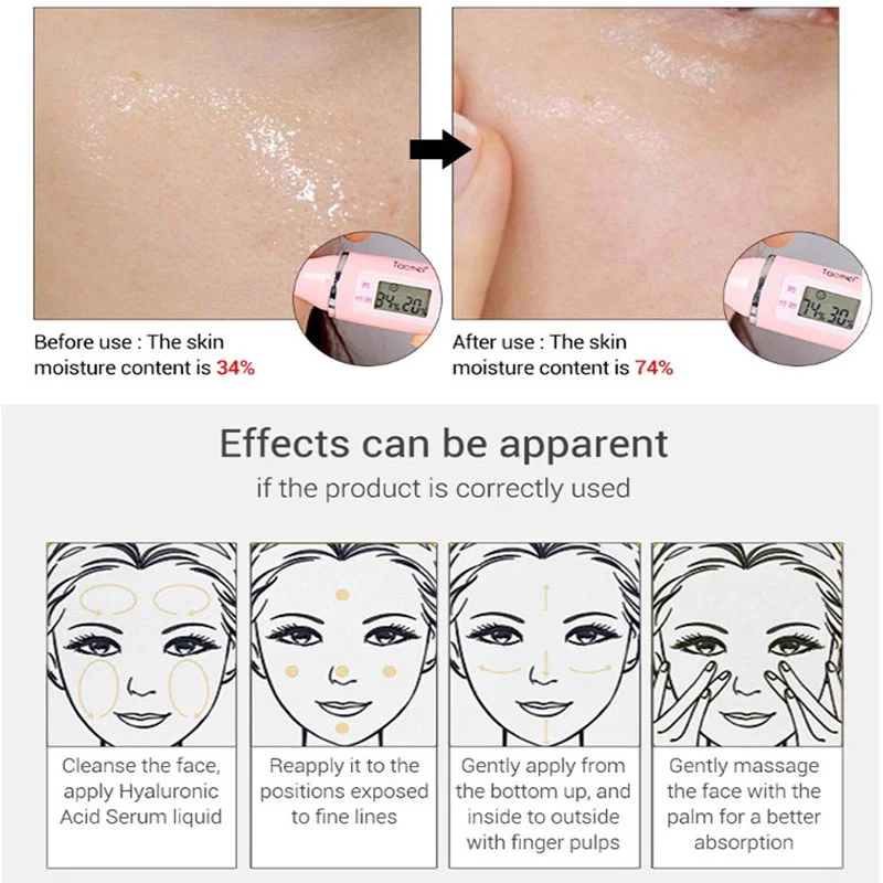 ▶Очистите лицо, нанесите жидкость в сыворотке гиалуроновой кислоты▶Повторно установите его на позиции, подверженные воздействию тонких линий▶Мягко наносите снизу вверх и внутрь на улицу с помощью пальчиковых импульсов▶Мягко массируйте лицо ладонью для лучшего поглощения