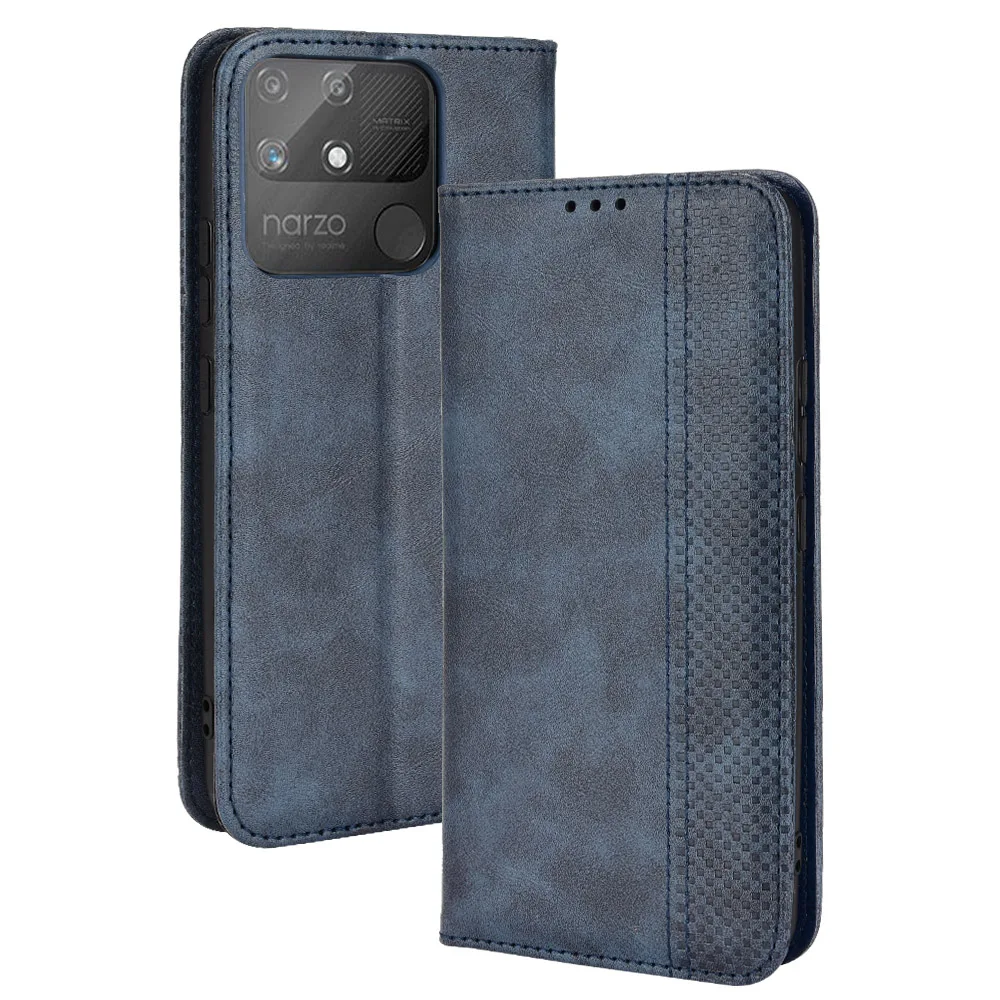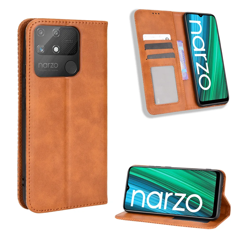 Тонкий кожаный флип-чехол в стиле ретро Oppo Realme Narzo 50A, чехол-кошелек с подставкой для карт, Магнитный чехол-книжка для Realme Narzo50A RMX3430, чехол s