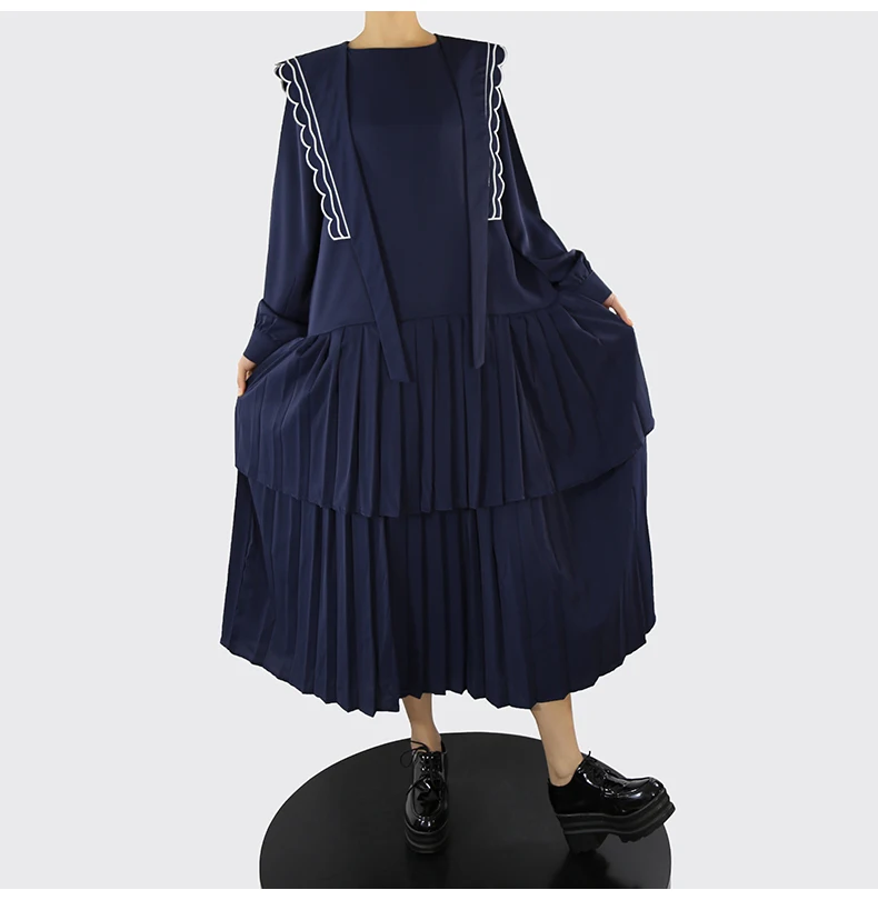 Новое весеннее модное плиссированное платье темно-синего цвета с дл...