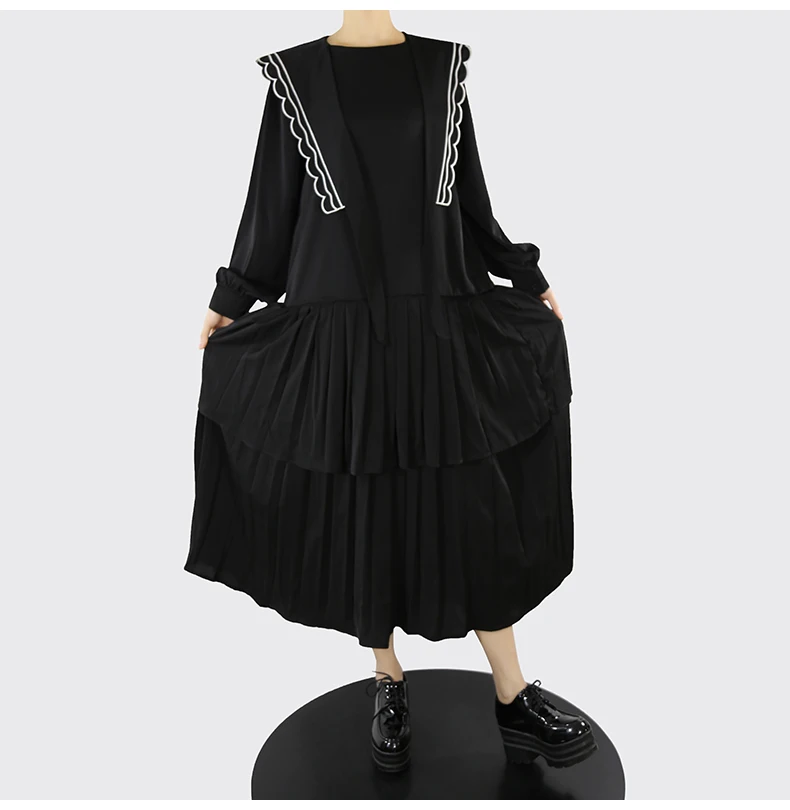 Однотонное черное, темно-синее весеннее Новое Модное Длинное плиссированное платье с длинными рукавами милая Одежда для девочек с оборками повседневная одежда, Vestidos, MJ8807